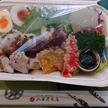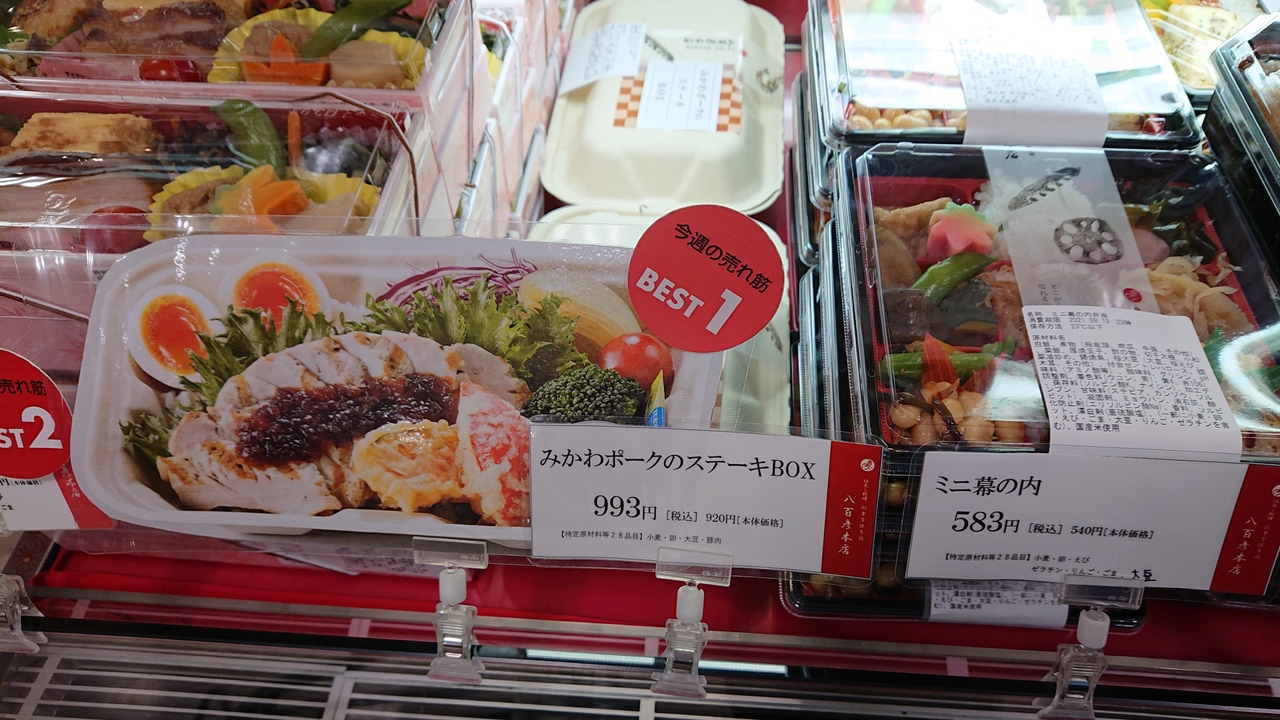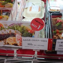 9月中旬の週末のお昼ごろに訪問。「今週の売れ筋BEST1」との店頭表示がきっかけとなり、みかわポークのステーキBOXを購入しました。メインのポークステーキは、豪快でボリュームがありました。また、ゆで卵は、適度に半熟で、色彩の点でも、味の点でも、BOX内の名わき役となっていると感じました。