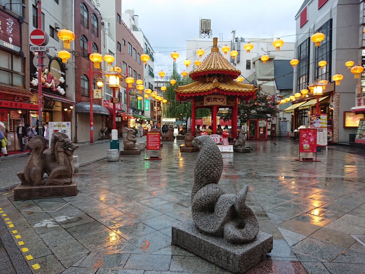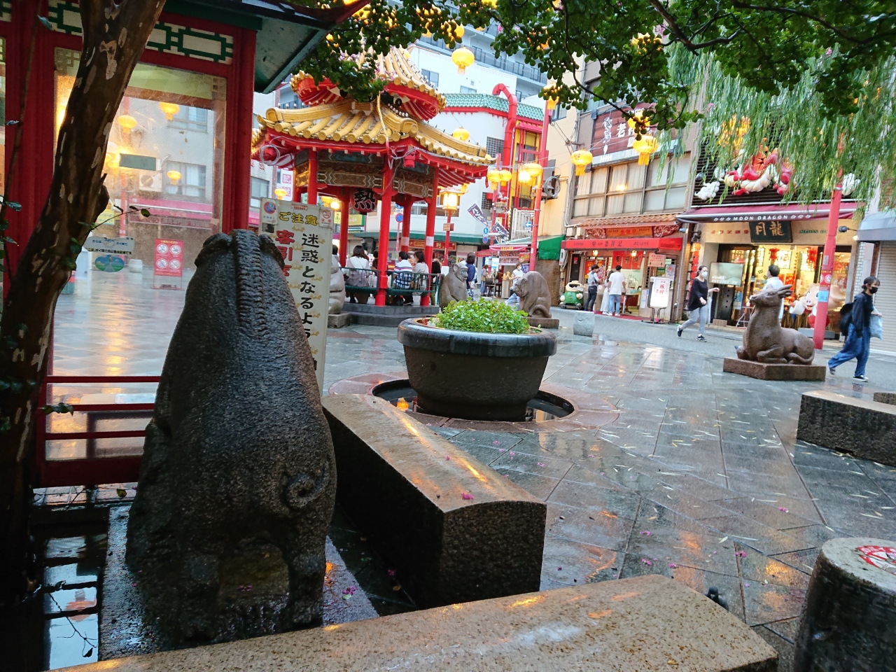 震災の後から路上で食べ物を売る店が増え、購入した人々はこの広場周辺で飲食。必然的に広場は人とごみで溢れかえることになりましたが、緊急事態に加え台風接近の日に訪れた南京町広場はいつになく静かでした。