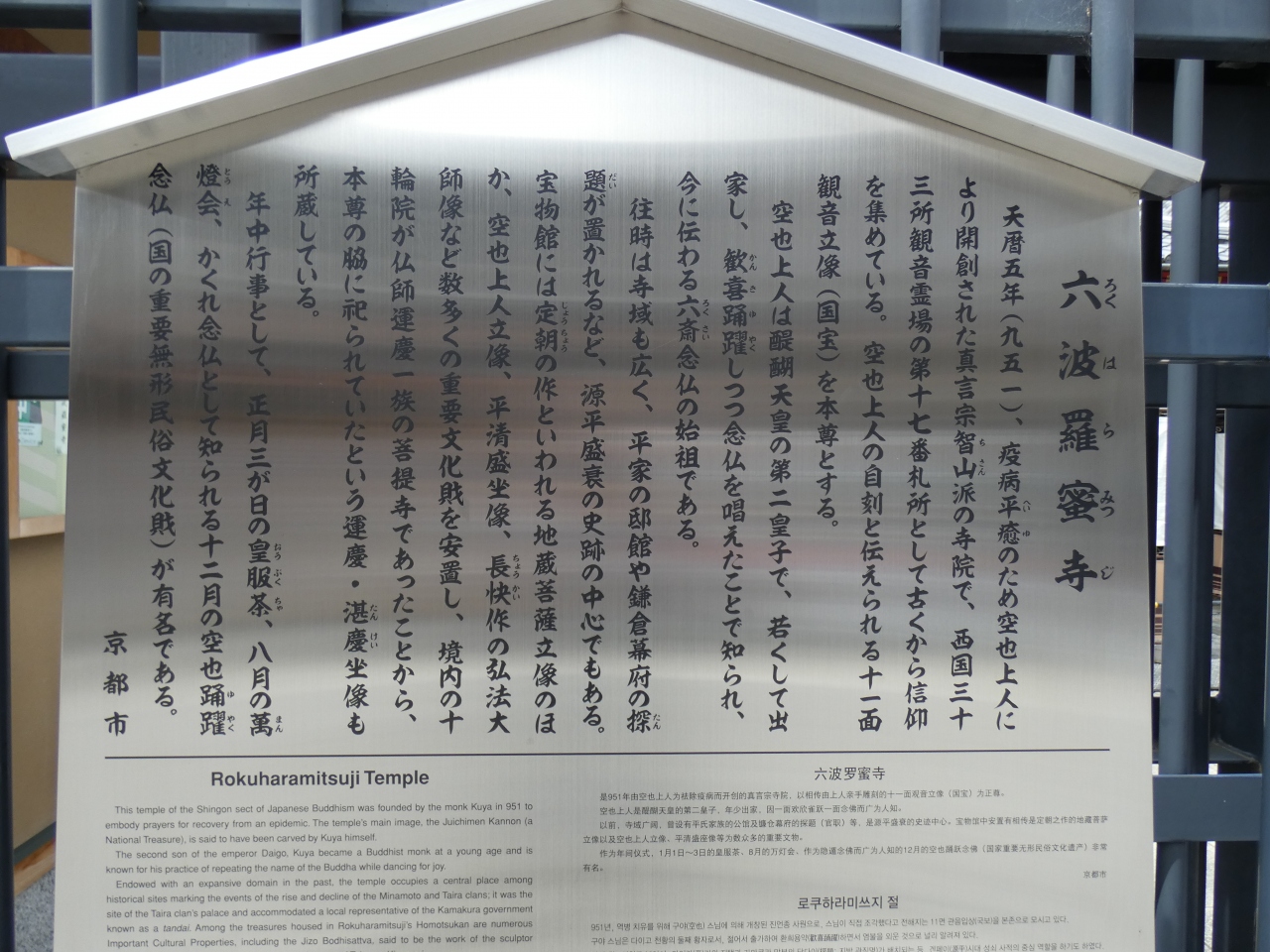 京都祇園の建仁寺の南側に位置する真言宗智山派の古刹、山号は補陀落山。応和3年(963)空也上人が開創し、西国三十三カ所第17番札所です。朱色に輝く本堂は南北朝時代の再建で重要文化財指定の建物。また本尊の十一面観音菩薩は国宝に指定されています。平家一門との繋がりが深く平家の屋敷に取り囲まれた時があったようです。鎌倉時代には六波羅探題が置かれた場所だそうです。