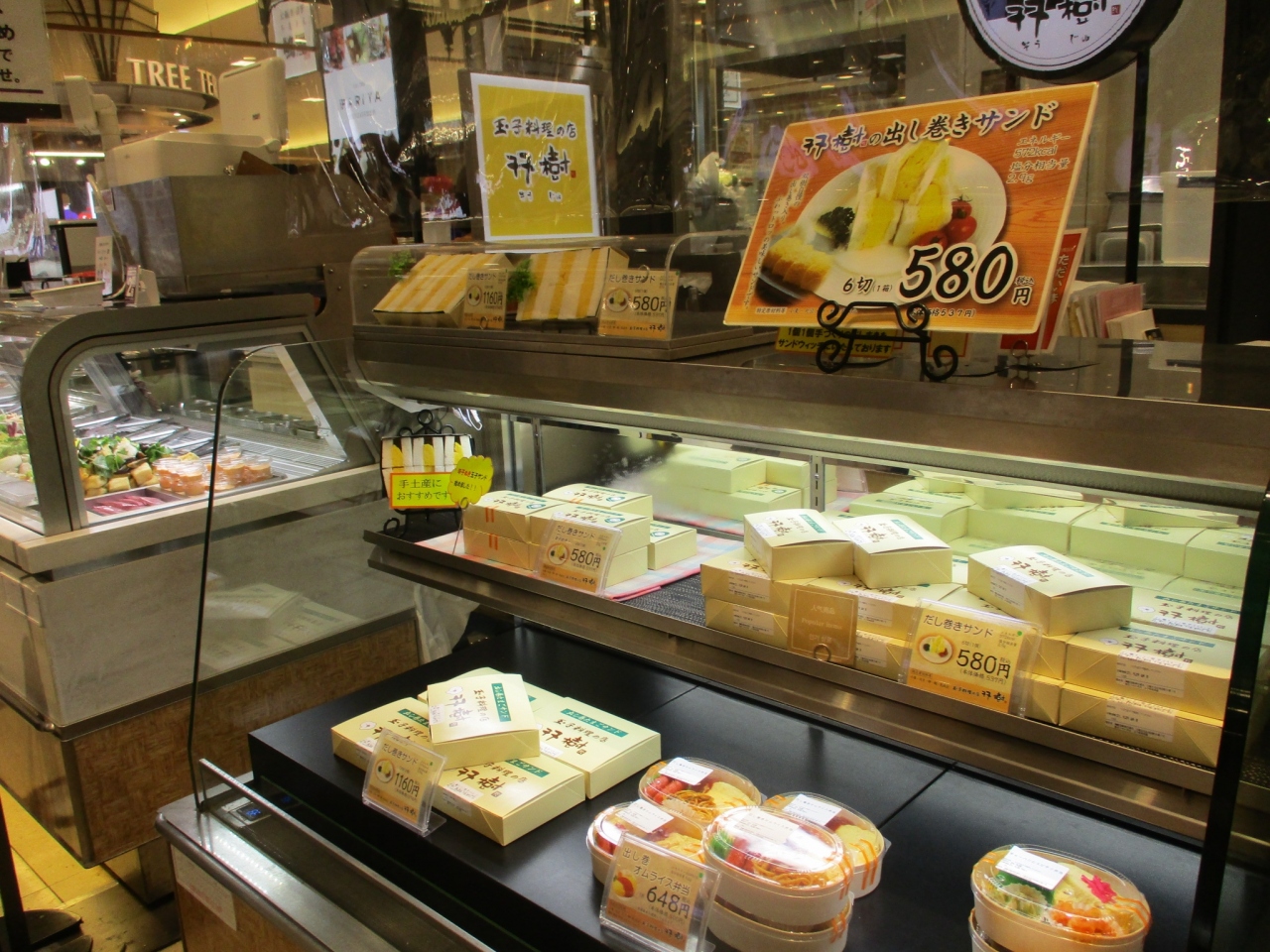 阪急うめだのデパ地下にあるだし巻たまごのお店です。だし巻たまごのサンドイッチ、だし巻たまごのお弁当、だし巻たまご単品などあります。ふわふわでおだしの味がしみていてとてもおいしいです。食べ応えがあります。