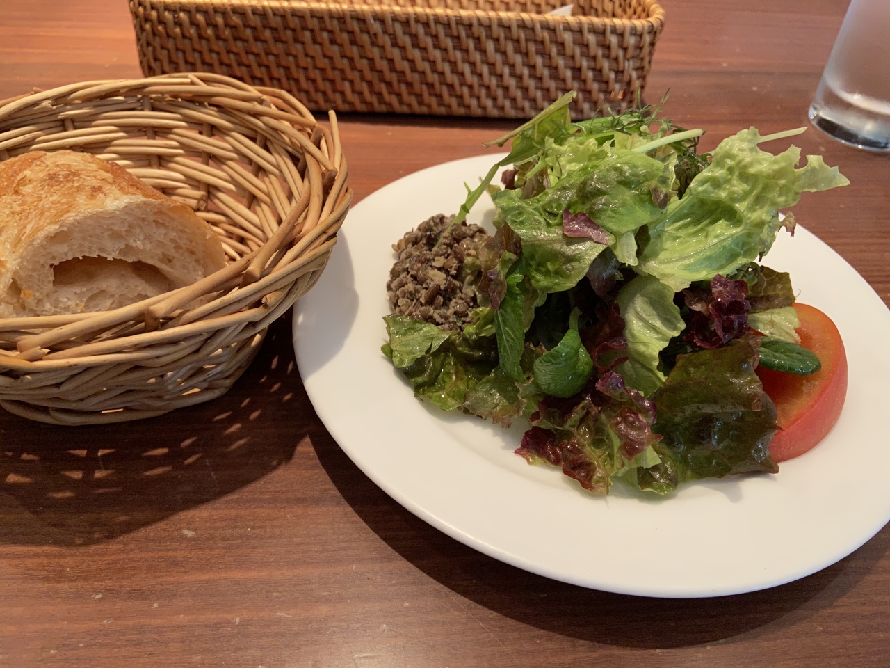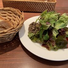 谷町4丁目にあるお店でランチしました。ランチの種類は1種類のみ。葉っぱの綺麗な水々しいサラダと、美味しいパンが来ました。地鶏のメインのお料理は皮はパリパリで中はやわらかくて、おソースともよく合い ものすごくおいしかったです。