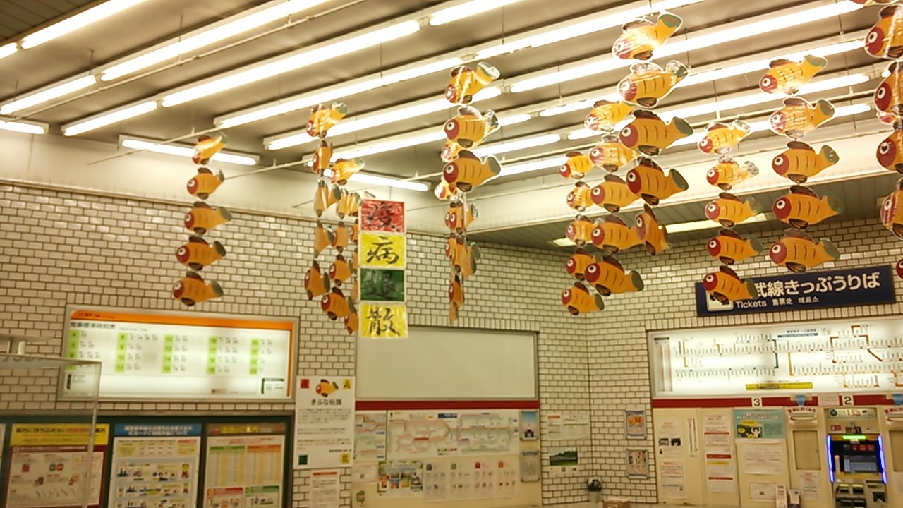 また、この8月で東武宇都宮線が開業90周年らしく、その記念とコロナ収束の願いをこめて駅構内に病魔退散のご利益があるという「きぶな」(黄色い鮒。地元の田川で釣れたという伝説)が飾られてたのも地元密着というかローカル線っぽい感じでよかったです。