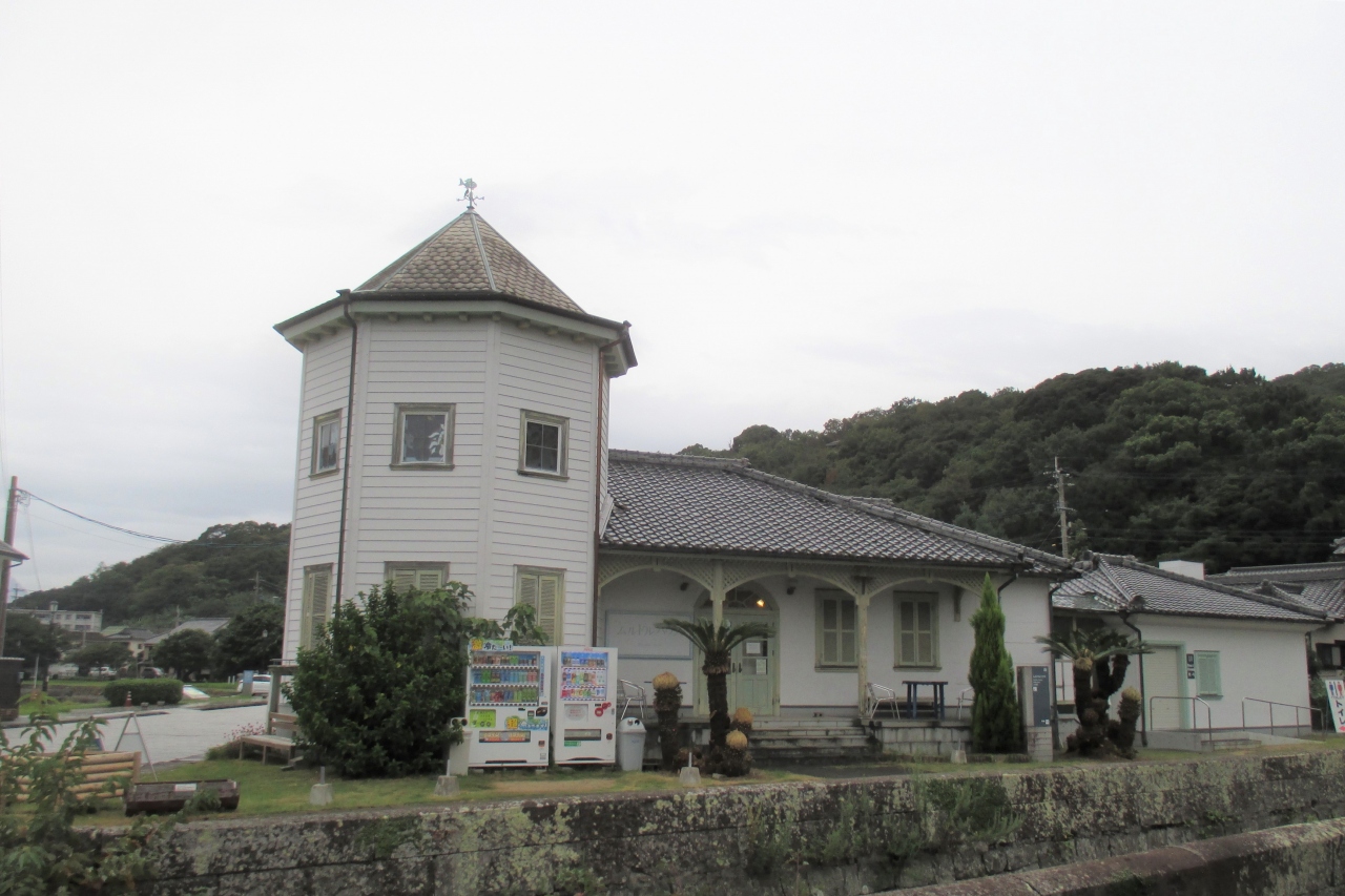 旧三角海運倉庫と道路を挟んだところに、洒落た外観の建物がありました。三角西港の設計者であるムルドルの名を付けたムルドルハウスです。外観や名前からもともとあった建物の様ですが、これは三角西港公園内に熊本県の港湾整備事業として新しく造られたお土産店です。ということで、比較的広いトイレも併設されていました。