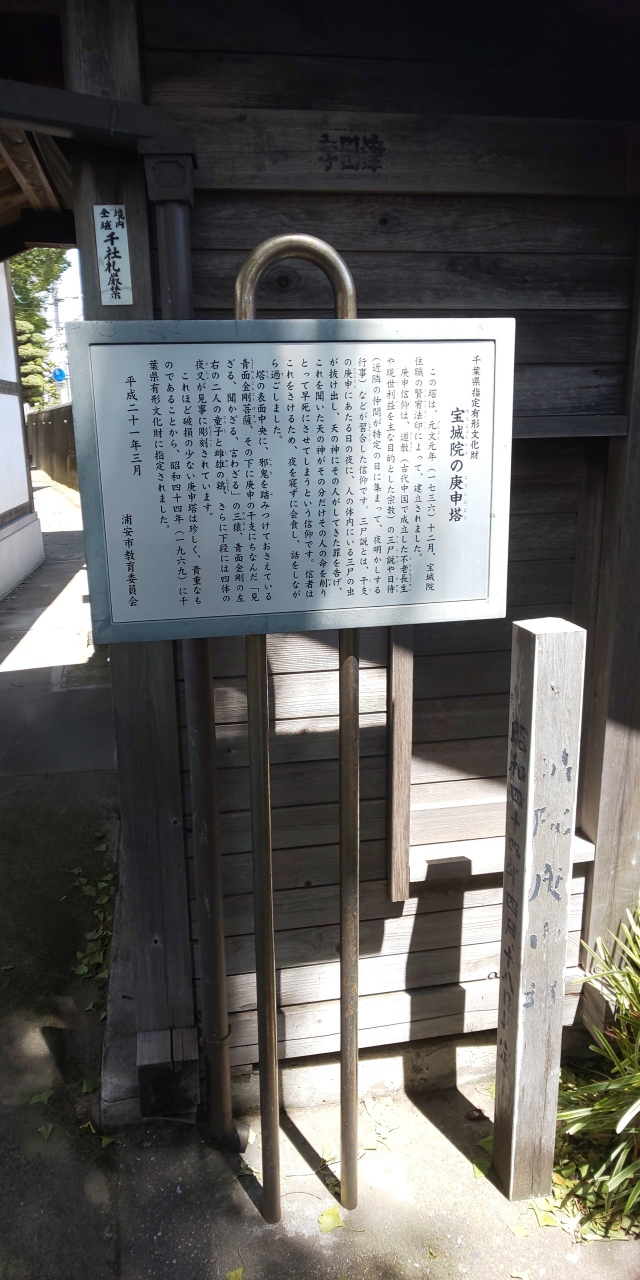 浦安駅から徒歩10分ほどのところにあるお寺で、その山門近くにはこの庚申塔があります。
