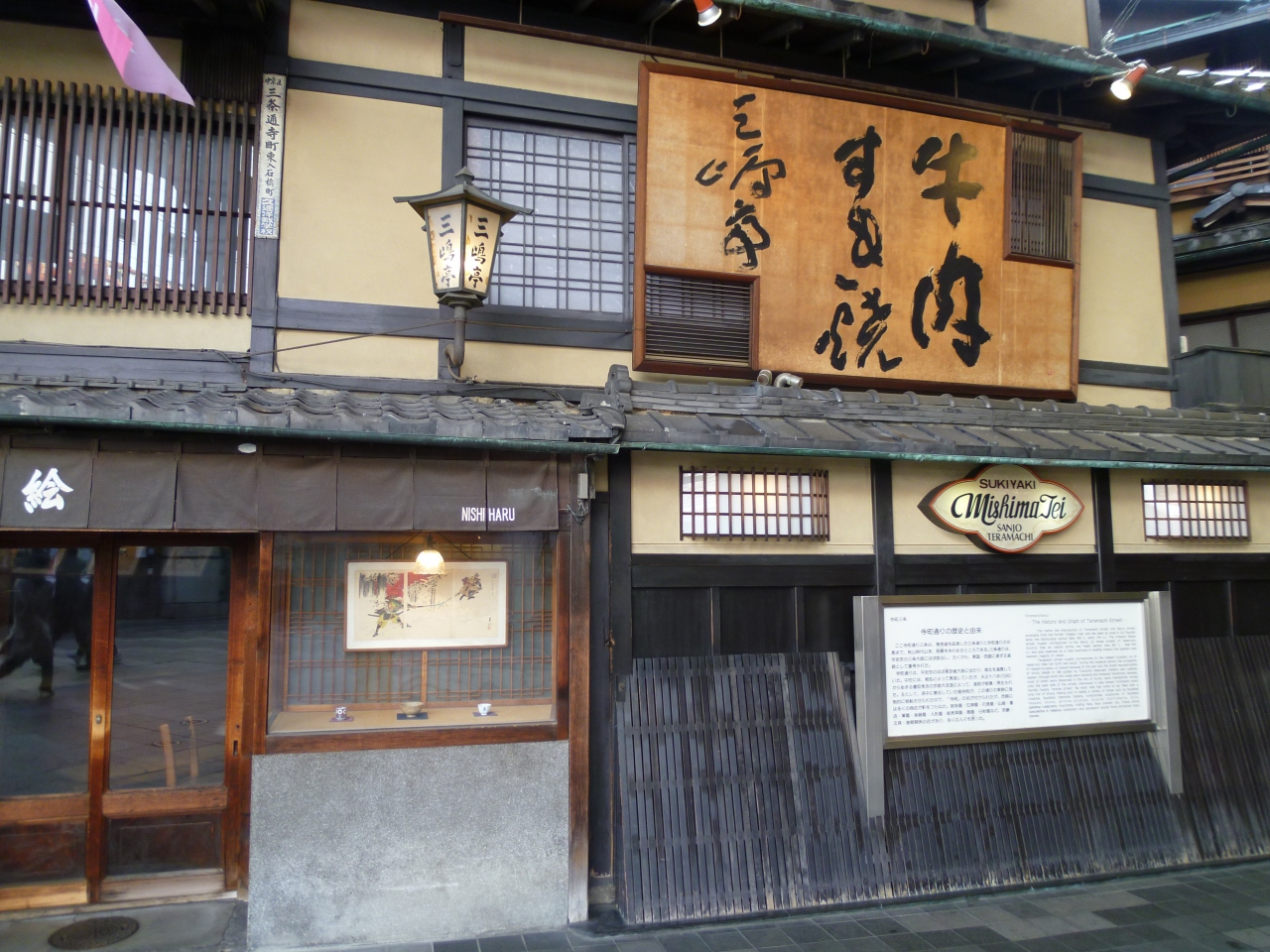 三嶋亭 本店は、三条寺町京極商店街にあります。明治文明開化の頃から、140余年にわたる伝統を守るすき焼の老舗店です。本店の1階には、すき焼料理店と牛肉販売店の2つの玄関があります。すき焼料理の店内は、外からは想像ができない複雑な構造となっています。その日に仕入れた極上の和牛すき焼きを楽しめます。京都の友人とランチを頂きにお邪魔しました。1人8,000円ほどのコースをオーダーしました。すき焼きは基本的に仲居さんみたいな女性が作ってくれました。お砂糖をかなりかけてお肉にも自家製秘伝のタレをかけるといった様子だったので、甘くて濃いのかなと想像しましたが、食べてみると甘すぎもなくとても美味しくいただけました。