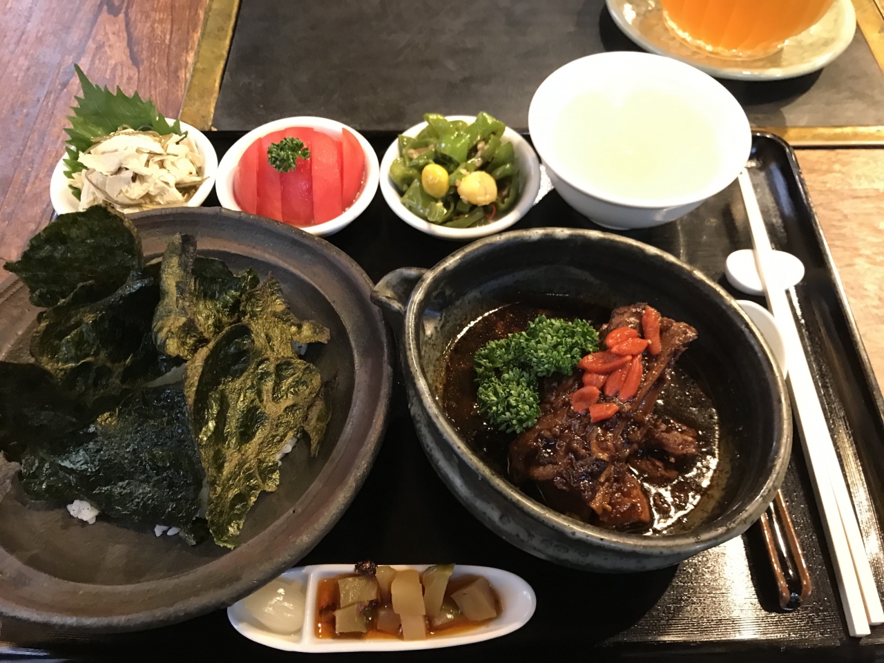 ただ、あまりこういう店には通いなれていないので、メニューを読んでいてもどんな料理かイメージが湧かず、店の人を呼んで少し説明をしてもらい、実のところやっぱりよく分からなかったのだが、<スペアリブと焼玄米の漢蒸し&炊きたてご飯の薬膳 ¥2400(税込)> を注文することにした。
