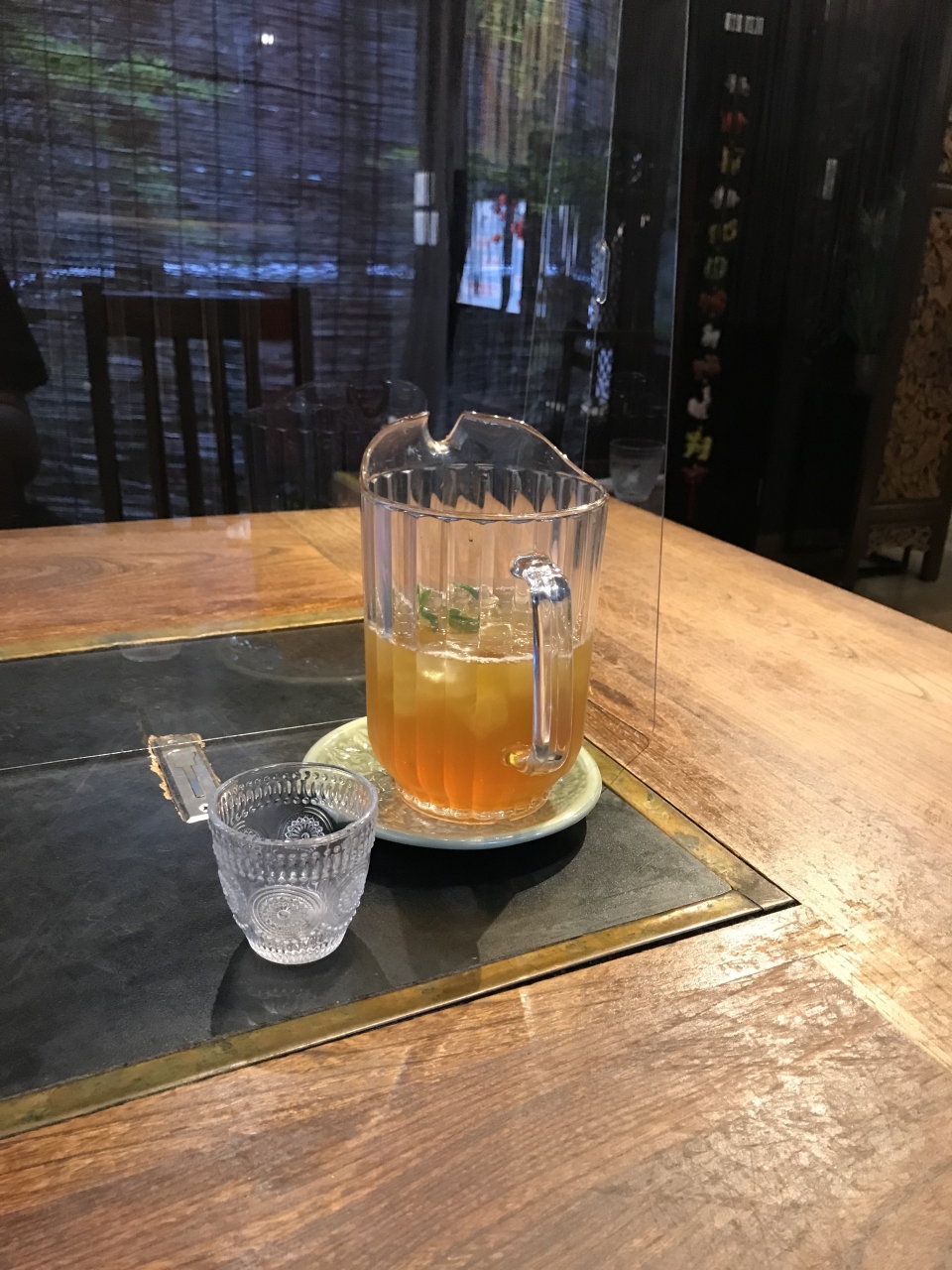 メニューはテーブルに置かれており、眺めていたら店の人が水ではなくお茶(店名と同じジャスミンティーだった)を持ってきてくれた。