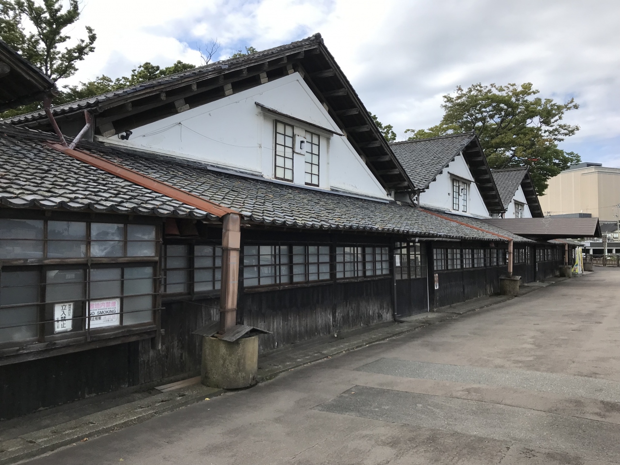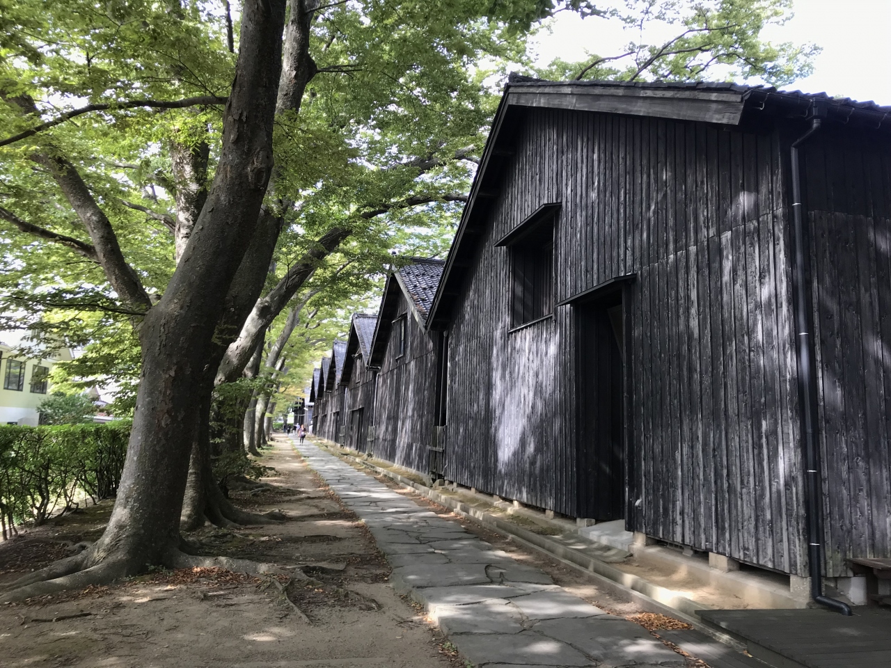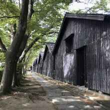 明治時代に建てられた米の保管庫で、現在も現役だそうです。倉庫は全12棟あり、裏側には美しいケヤキ並木が並んでいます。ケヤキ並木のある裏側から見る倉庫の眺めと表側からの眺めは、全く印象が異なるので、両方共の散策をお勧めします。一部の建物は、土産物店や資料館として使われていました。