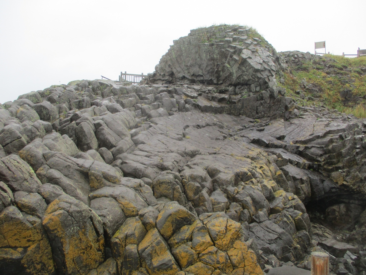 花咲カニで有名な花咲漁港の近くにある放射状の柱状節理の石です。晴れていれば海をバックに素晴らしい写真が撮れると思いましたが、あいにく夏場とは思えない冷たい雨が降っていて駄目でした。でも、天気の悪い根室の方がらしい光景に思えました。