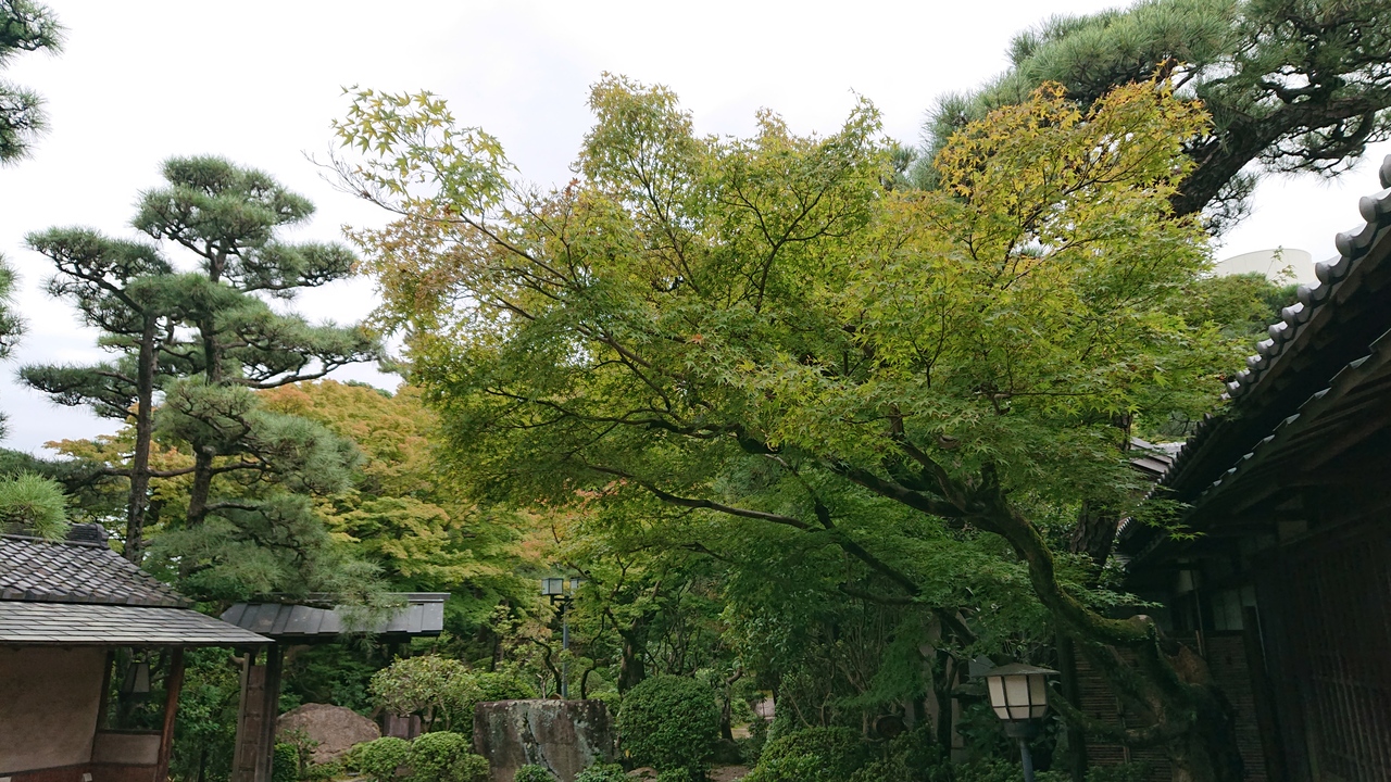 10月初旬の、朝の時間帯に訪問し、お庭を散策しつつ拝見しました。雨の上がった後で、一部足元の悪い場所もあり、全ての場所には行きませんでした。ですが、まだ見頃には早過ぎましたが、一部の木々のそのまた一部の葉の紅葉が始まりかけているのが観られ、綺麗でした。