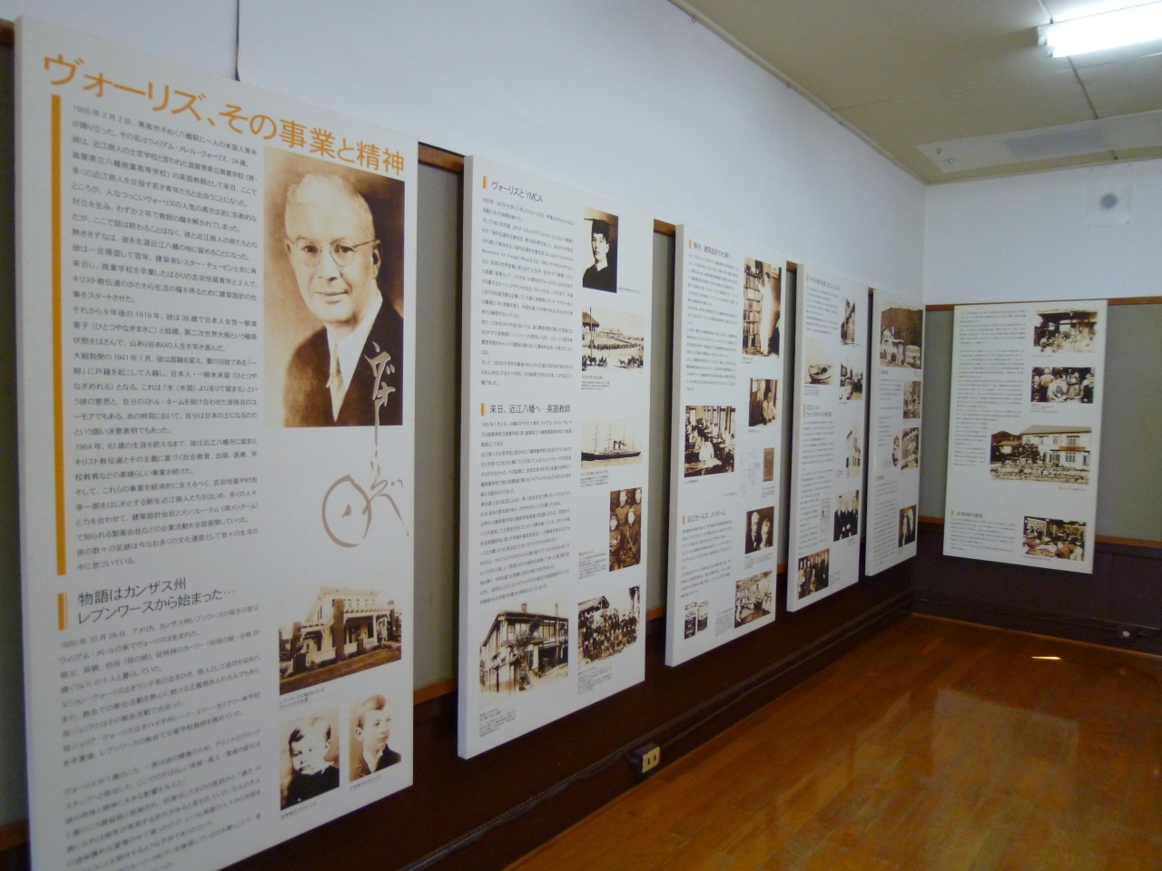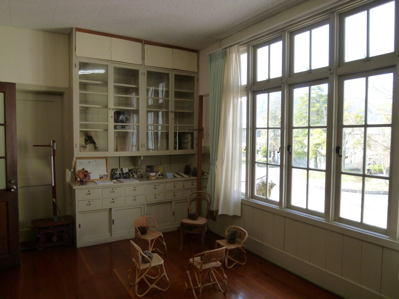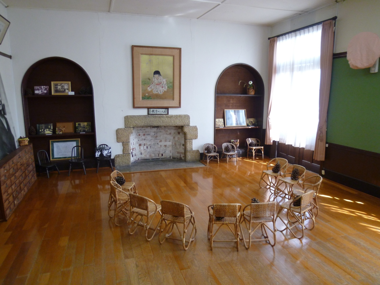 ハイド記念館は1931年建設され、2000年に国の登録文化財に指定されました。2003年3月まで幼稚園舎として使われていました。現在は、創立者ゆかりの品や絵画、パネルを展示、一般公開されています。暖かみあふれる校舎で、ヴォーリズ建築の優しい香りが伝わってきます。私が入館したら、係の方がとても親切に館内を案内してくれ、とても気持ちよく見学することができました。