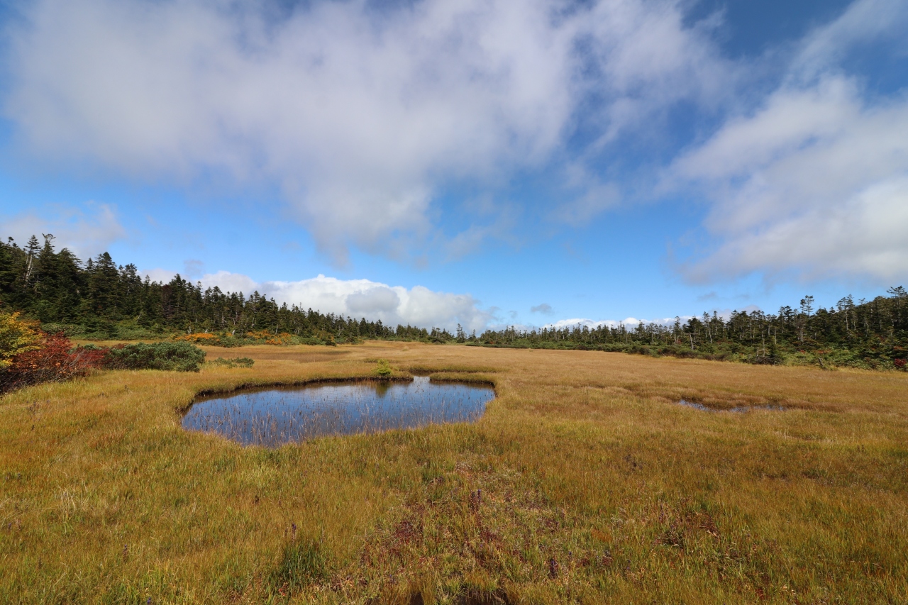 八幡平山頂に近い湿原です。アスピーテラインには駐車帯があり、結構な数の車が停まっていました。木道の遊歩道で15分ほどで至ります。そのまま八幡平山頂まで登山道が通じているようですが、車で来たので折り返すしかありません。