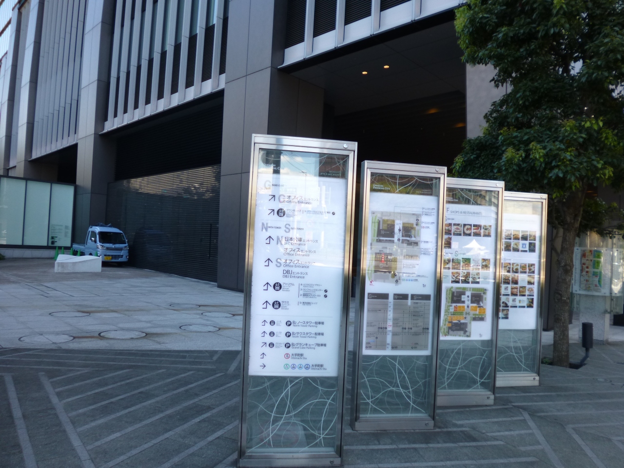 高層ビルが林立する大手町エリアの再開発で誕生したツインタワーです。日本橋川のすぐ南に位置し、大手町のオフィス街ではもっとも北に位置します。近隣のホテルに宿泊した際、テイクアウトランチを物色しに足を運びました。