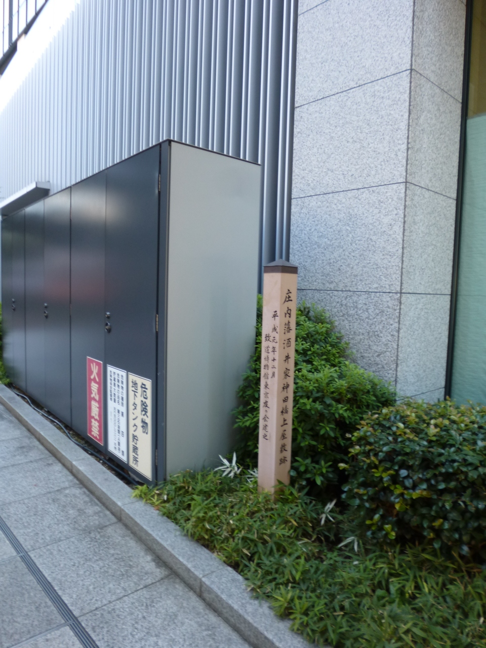 大手町フィナンシャルシティ・ノースタワーの北側の植え込みに「庄内藩酒井家神田橋上屋敷跡」と記された標柱があります。この界隈では珍しい昔ながらの標柱です。往時の屋敷を偲ばせるものが何もないのは残念ですが、現在の洗練されたオフィス街とのギャップを想像してみるのも面白いです。