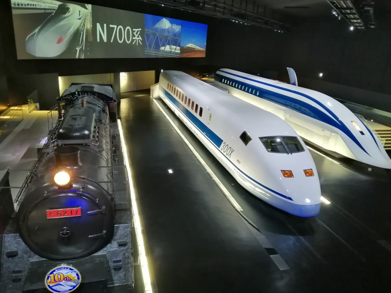 中に入るとまず、高速鉄道の歴史がわかる3台が並んでいて、この導入展示がカッコよくて、特に鉄道好きではなく、工業技術に関心があるので来てみたのだけど、一気にテンション上がりました。