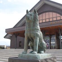 大館駅からすぐ、大館市観光交流施設「秋田犬の里」の入口にあります。秋田犬の里の建物は忠犬ハチ公が主人を待ち続けた大正時代の渋谷駅をイメージしており、当時の光景を再現しています。以前は大館駅前にあったものでしょうか。