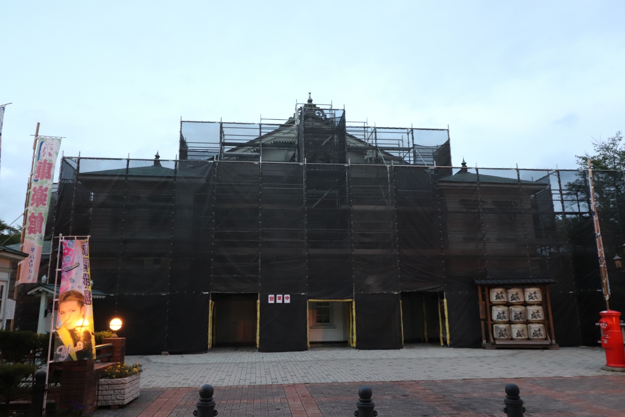 かつては小坂鉱山で賑わった小坂に今も現役で残る芝居小屋です。国の重要文化財になっており、楽屋や舞台裏の装置など館内を見学することができます。また常に公演も行われています。訪れた時は外壁塗装工事で足場で覆われており残念でした。