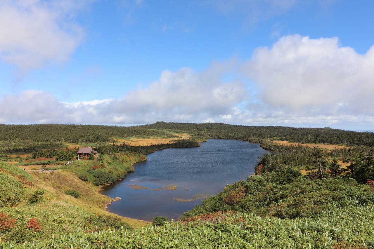 八幡平山頂遊歩道のガマ沼分岐から眺めることができます。遊歩道沿いにはいくつかの湖沼が点在していますが、一番美しい八幡平を代表する沼です。高山植物を愛でながらの沼の廻りを一周する散策路も整備されています。