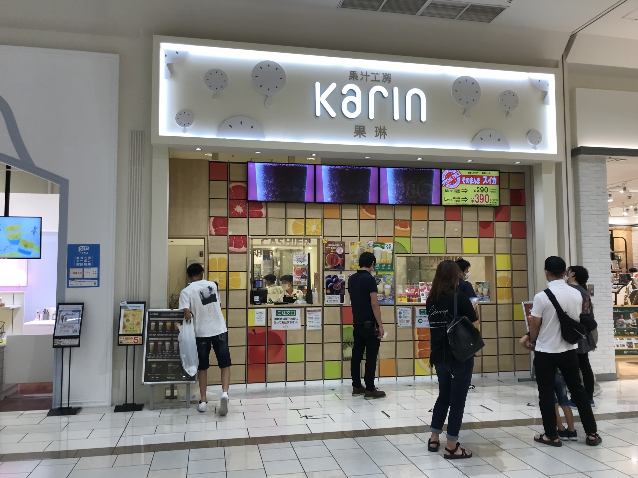 果琳は、イオンモール草津店の1階で、以前に三國屋善五郎があった場所に新しくできたお店です。「生フルーツ」を中心にフレッシュなジュースを楽しめるお店で、イートインはなく、テイクアウトだけです。今回頂いたものは、バナナミルクとパイナップルジュース。バナナミルクは、白色のバナナ系ミックスジュースの味でした。パイナップルは、酸味がしっかりしていてサッパリしました。
