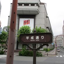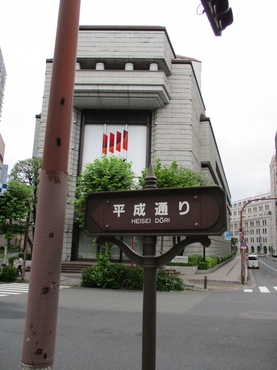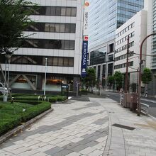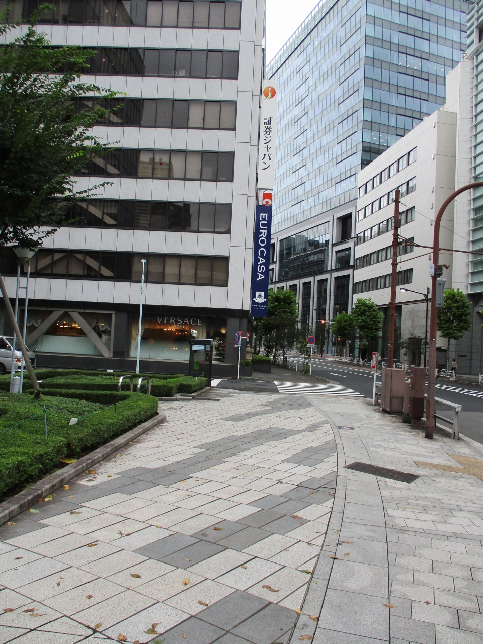 日本橋兜町辺りを散歩していた時に、東京証券取引所の前にある通りでした。ビルに囲まれた通りは、昭和通りの裏手になりますが、交通量はけっこう多いようです。兜町近辺の歩道はきれいに整備されていたので、広く安全に通行できる通りでした。