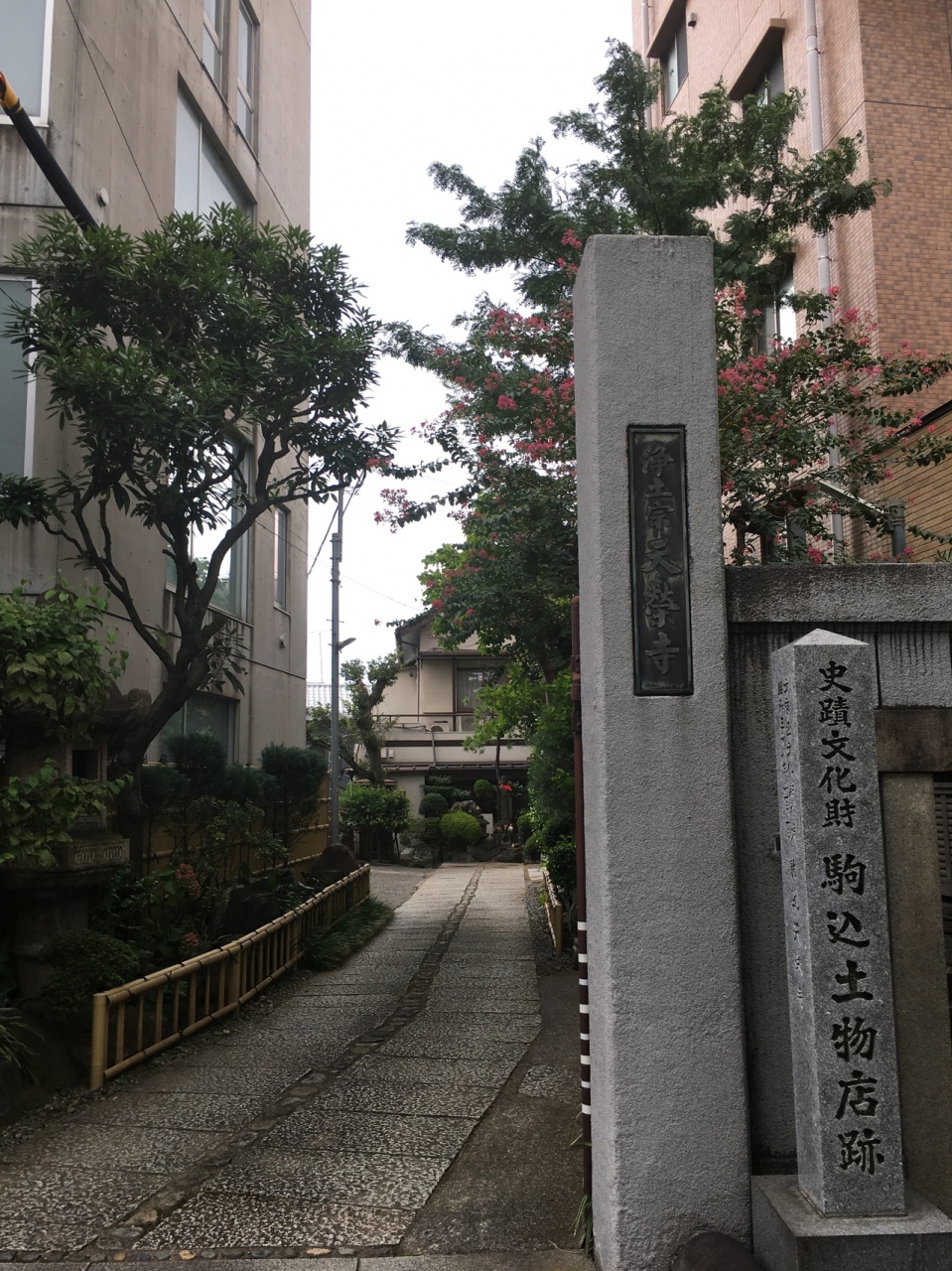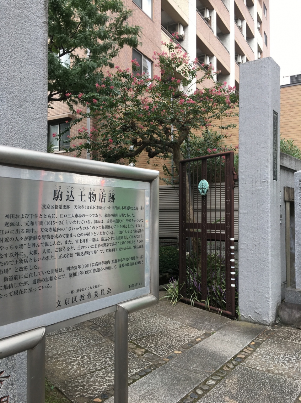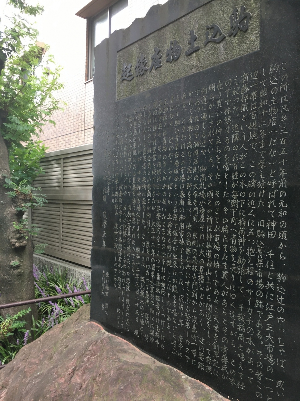 天栄寺の門前に石碑がありました。境内入った右側には大きな石碑もあり此方は文字が記載してありました。350年前から昭和初期まで江戸の三代市場として栄えたところで、旧駒込青果市場があった場所ですが現在は寺と交通量が多い道でした。