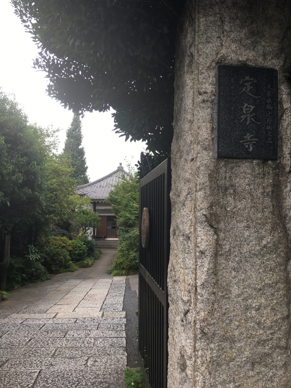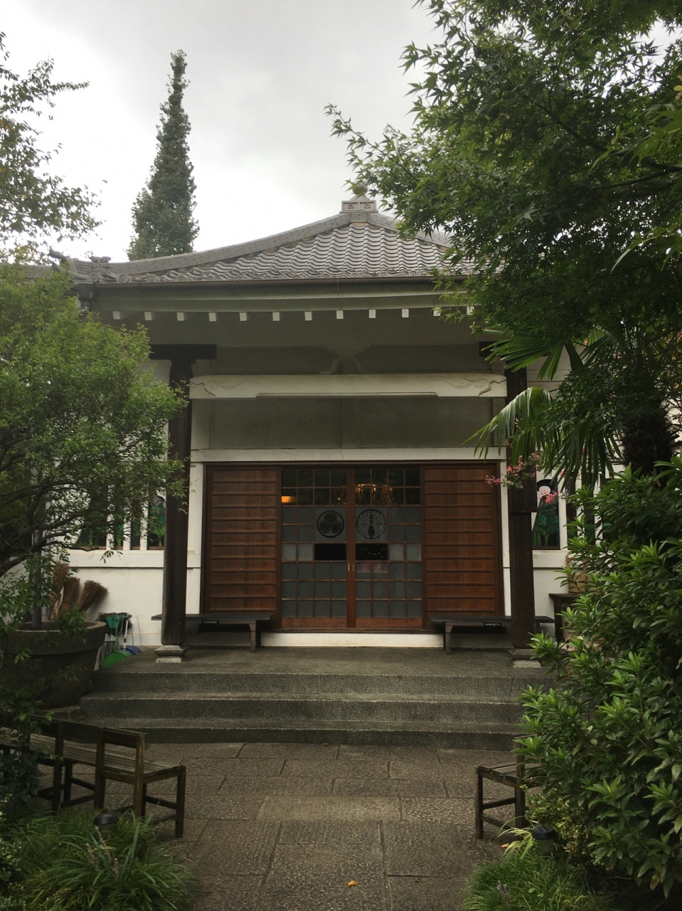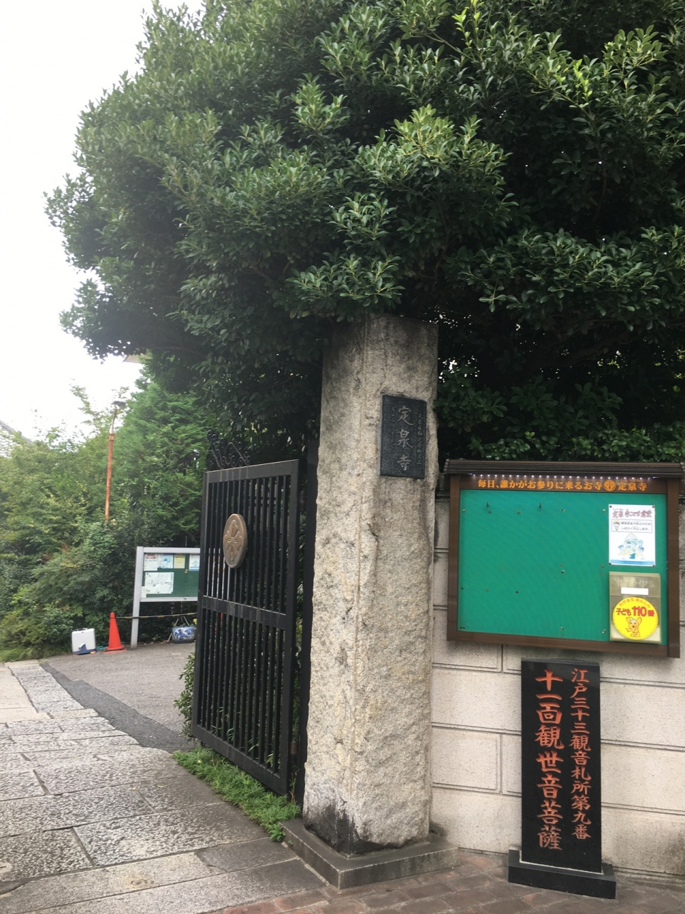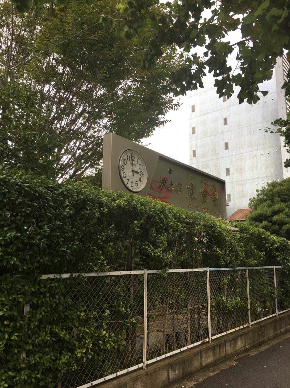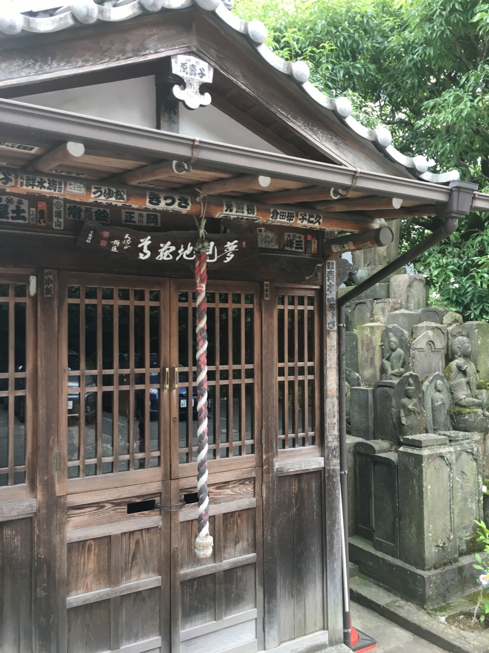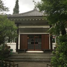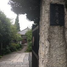 幹線道路沿いにある寺で、道沿いには大きな時計がありました。草木が多い境内で、祠のような建物の横には石仏が固まっていました。本堂の後方がお墓で、クリスマスツリーのような高い木が目立っていました。11面観音菩薩があります。