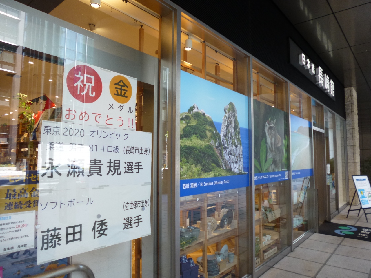 大手町駅から日本橋駅まで向かう途中、「日本橋 長崎館」に立ち寄りました。昨年の秋、長崎旅行をして感じたのですが、長崎は南北に長く、入り組んだ地形や離島が多いこともあり、風光明媚な観光スポットがたくさんあります。次回の旅行に備えてパンフレットなどを入手しました。店の前には長崎県出身の五輪メダリストへのお祝いメッセージが貼られていたのが印象に残りました。