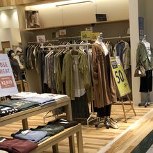 イオンモール鶴見緑地店の一階にあるお店です。若い女性向けの洋服中心ですが、色合いは抑え目で、無地のものが多いです。秋物が中心で、セールの季節でもないのに50%OFFのポップがありました。お求めやすい値段設定ではあります。