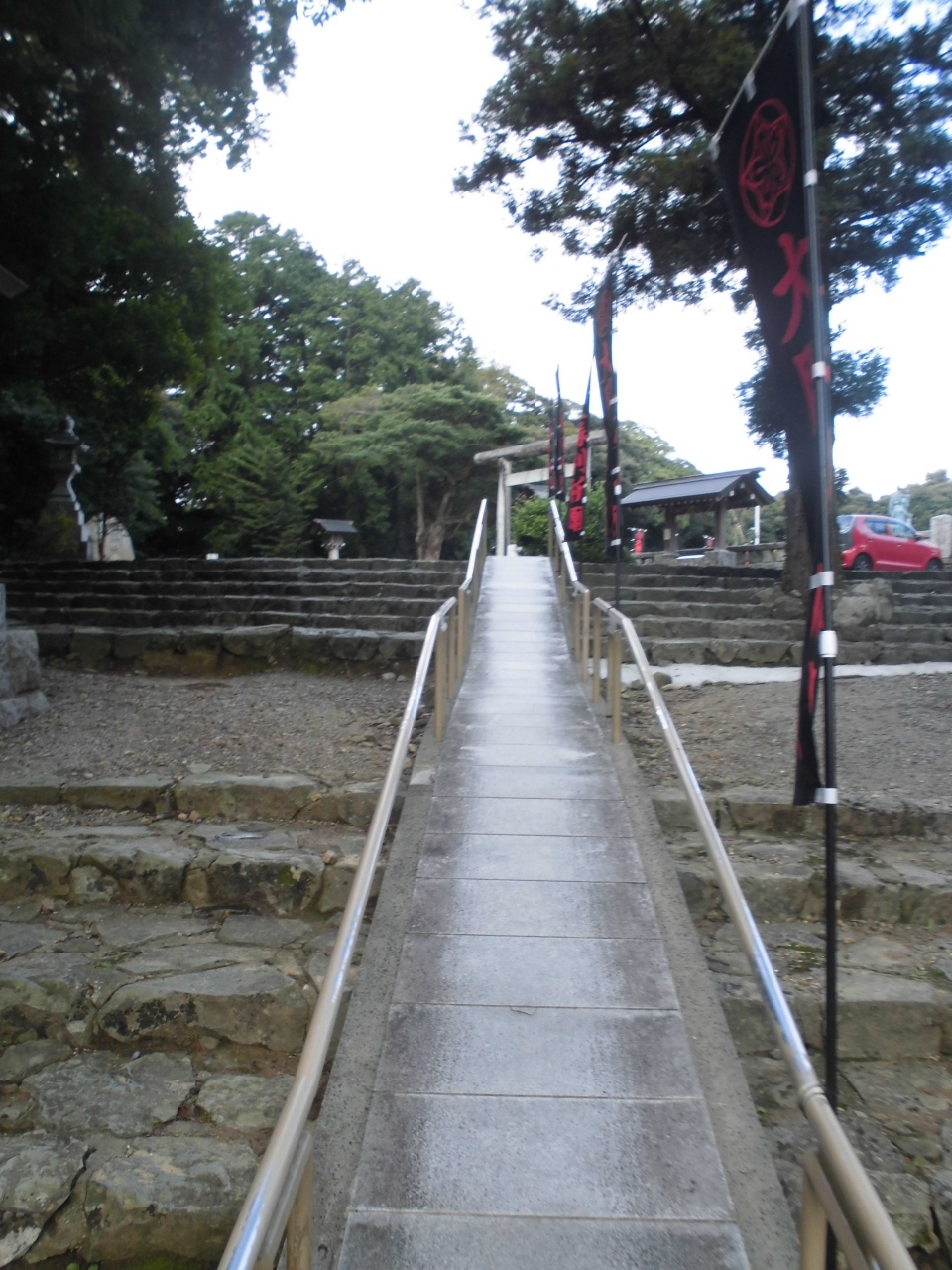 松江城内にあります。朝早くだったので誰もいませんでした。ここの参道を見て思ったのはスロープがど真ん中についていたことでした。こういうおは意外とないので(ましてや神社)意外に感じました。バリアフリーに配慮した神社です。