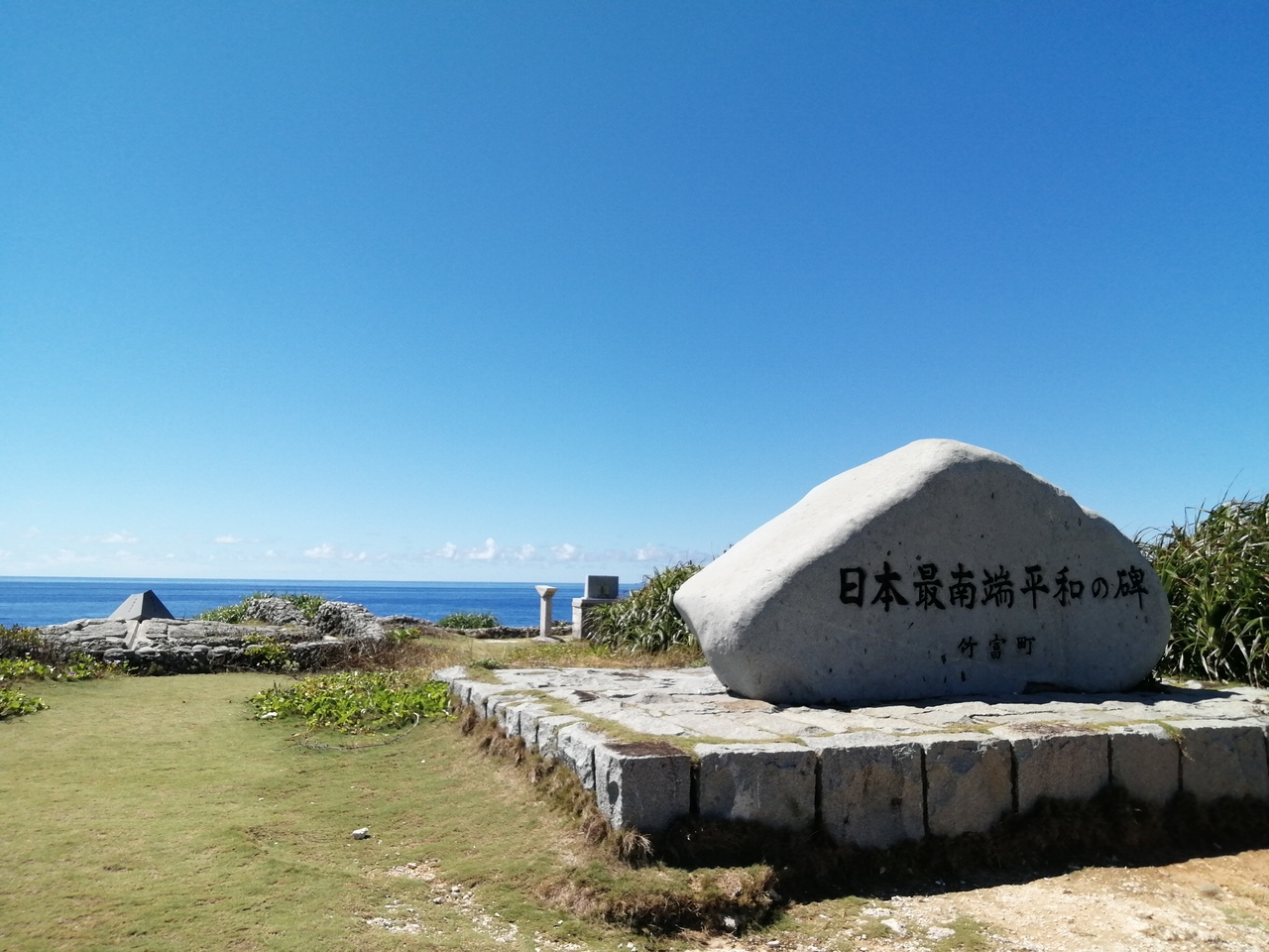 “らしき”碑は4つあります。詳しくは「wiki」をご覧下さい。どれが“ホンモノ”なのかと考えるのは愚の骨頂。最南端は現に一点しかありませんが、それを示すただの“碑”なのですから別に何個あっても問題ないと思います。個人的に好きなのは「日本最南端之碑」と刻まれた逆三角形の形をしたものでしょうか。その昔、北海道から日本縦断の旅を敢行した学生が旅の終着点として到達した記念に建てたもののようです。近くにある日の丸(建てたのは別団体)との“コラボ”が最高です。写真的にも映えると思います。