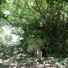 “普通の公園”を想像してしくと、どこ?となりますが、コンクリート製のベンチが置かれているスペースが公園です。ちゃんと「ぶりぶち公園」と書かれた石碑もあります。公園の奥にある“階段”を登ると下田原城跡があります。石を積んだ城壁跡が残されています。