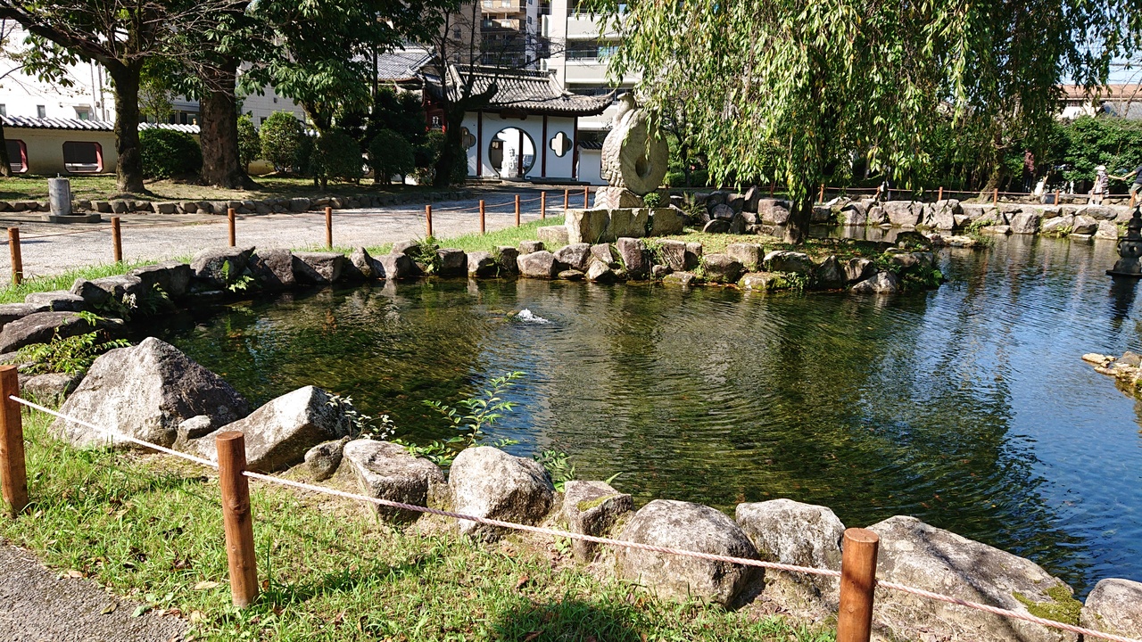 杭州市と岐阜市が、友好都市として提携10周年の際に造られた、記念公園ということです。記念碑も建てられています。週末の日中に訪問して所、池の周囲を中心に、多くの人が、散策や休憩をしており、かなりの賑わいがありました。