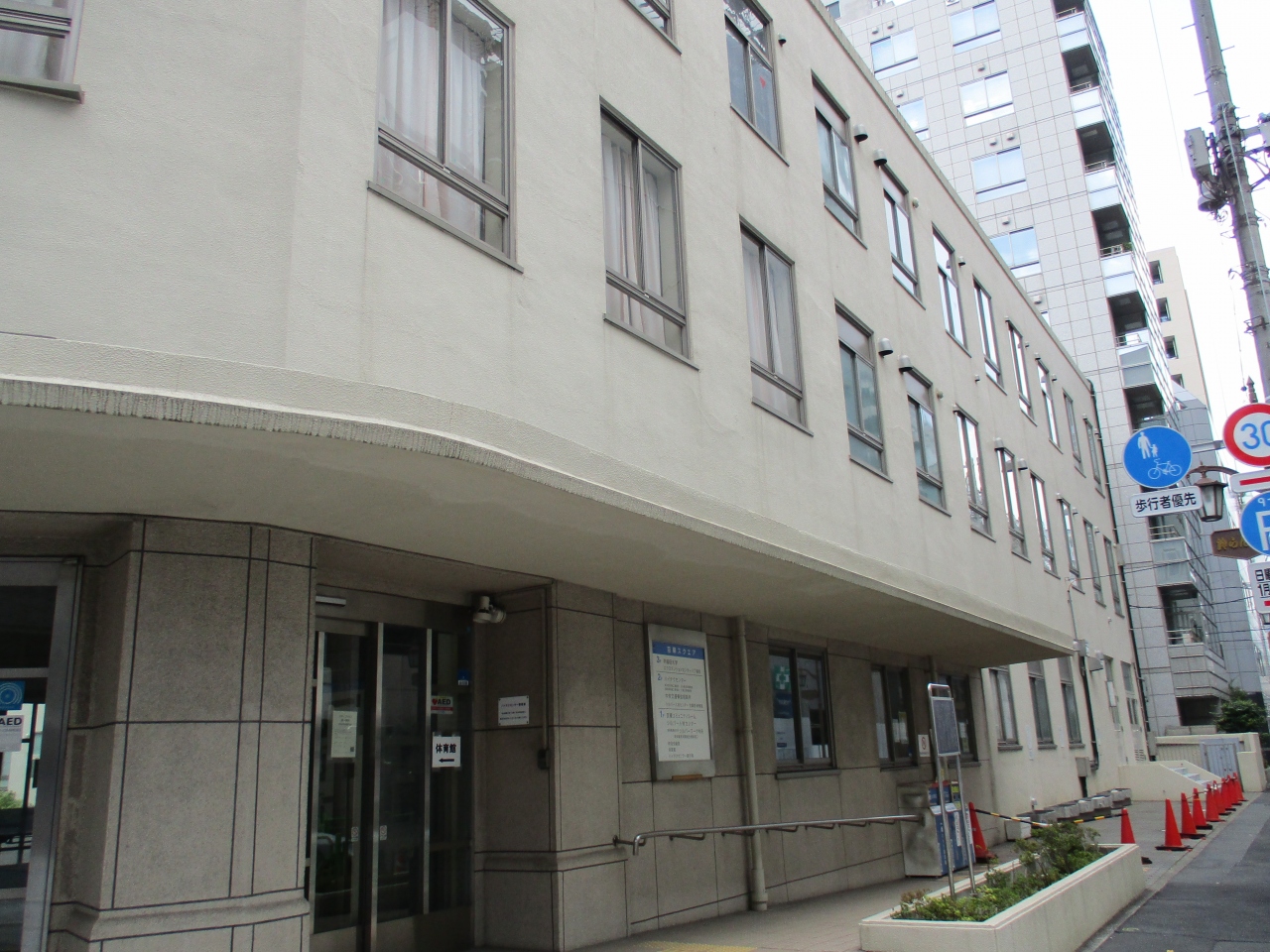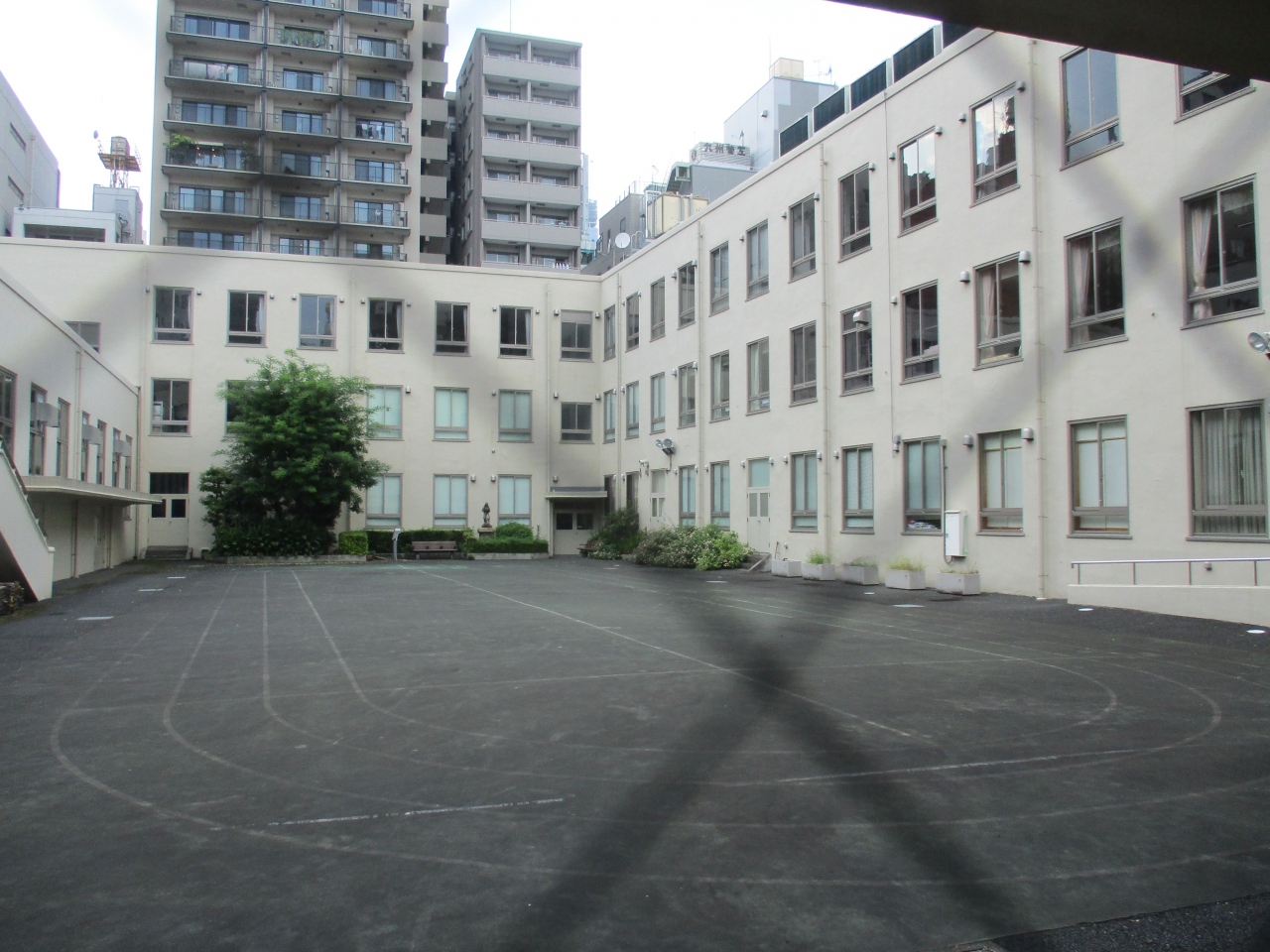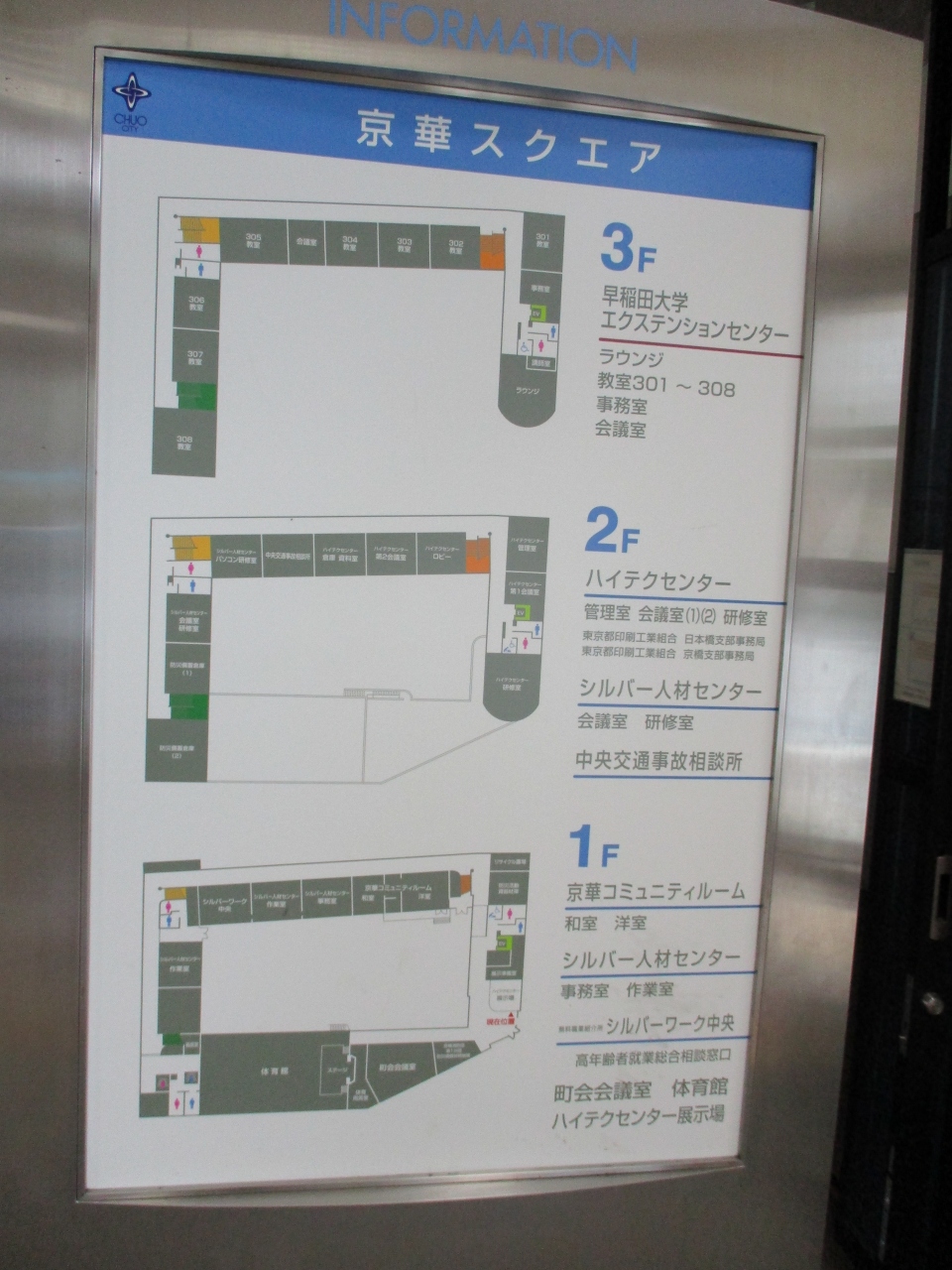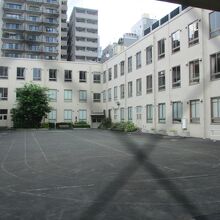 八丁堀周辺を散歩していて、とてもレトロ感のある素敵な雰囲気のビルがあったので立ち寄ってみました。建物の中に入ると真ん中が中庭のようになっていて、ぐるりと建物が囲んでいる珍しい形のビルでした。今はコミニュティルームなどに利用されているようでした。