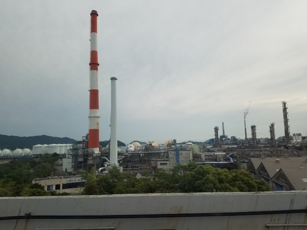 新幹線で徳山駅を通過する際に見える工場と煙突群はお馴染みになってきましたがそろそろ別の視点でも見たみたいなと思っていたところ、最近大分県の国東に行った時に国東半島の北側から徳山まで船が出ていることを知りました。しかも徳山側はわりと駅の近くが船着き場のようでこれに乗れば海側から工場群が見えるのではと思い付きました。次に機会があれば試してみたいと思います。