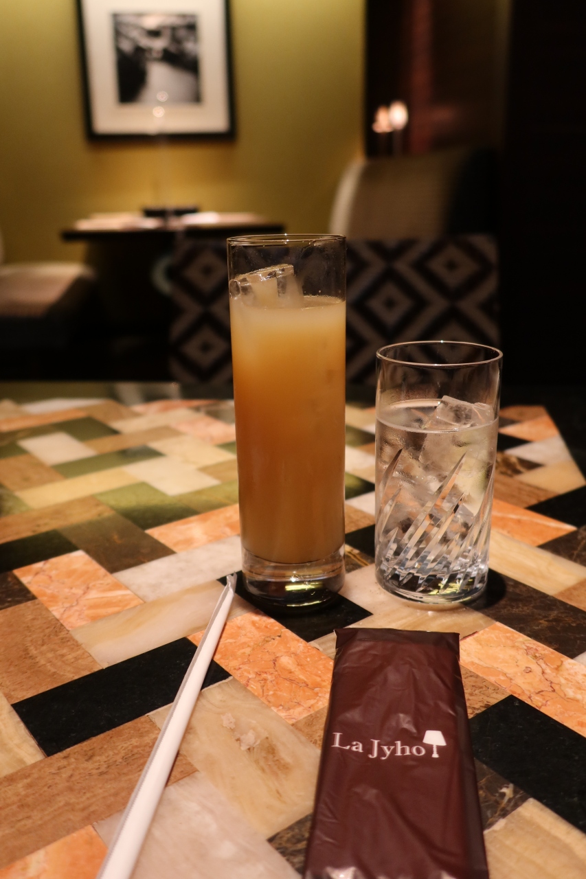 京都駅の近くにある京都センチュリーホテル2階のロビー前にオールデイダイニング ラジョウがあります。暑い夏の日だったので、ホテルの部屋に戻る前にゆったりとした所でソフトドリンクを思い立ち寄りました。ジンジャーエール、グレープフルーツジュースを頂きましたが、思った通りの味です。