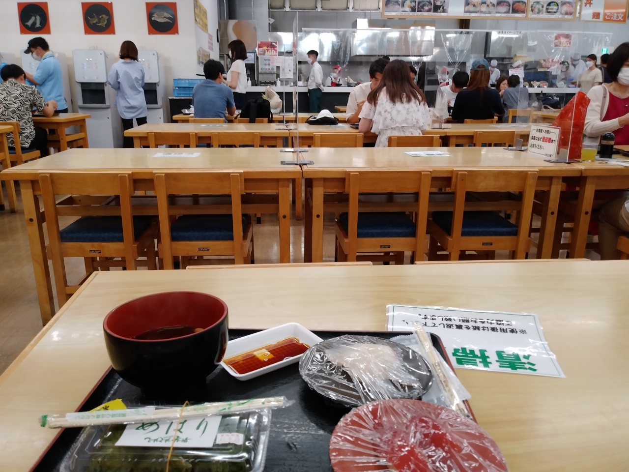 白浜の観光名所の一つ。堅田漁港に近いが、白浜の地の物よりも、勝浦から入ってきたマグロ等が多い印象を受けた。海鮮丼は大行列だが、寿司は回転が速く、めはり寿司等も置いてあり一通りの食事をすることが可能。席数は意外と多い。