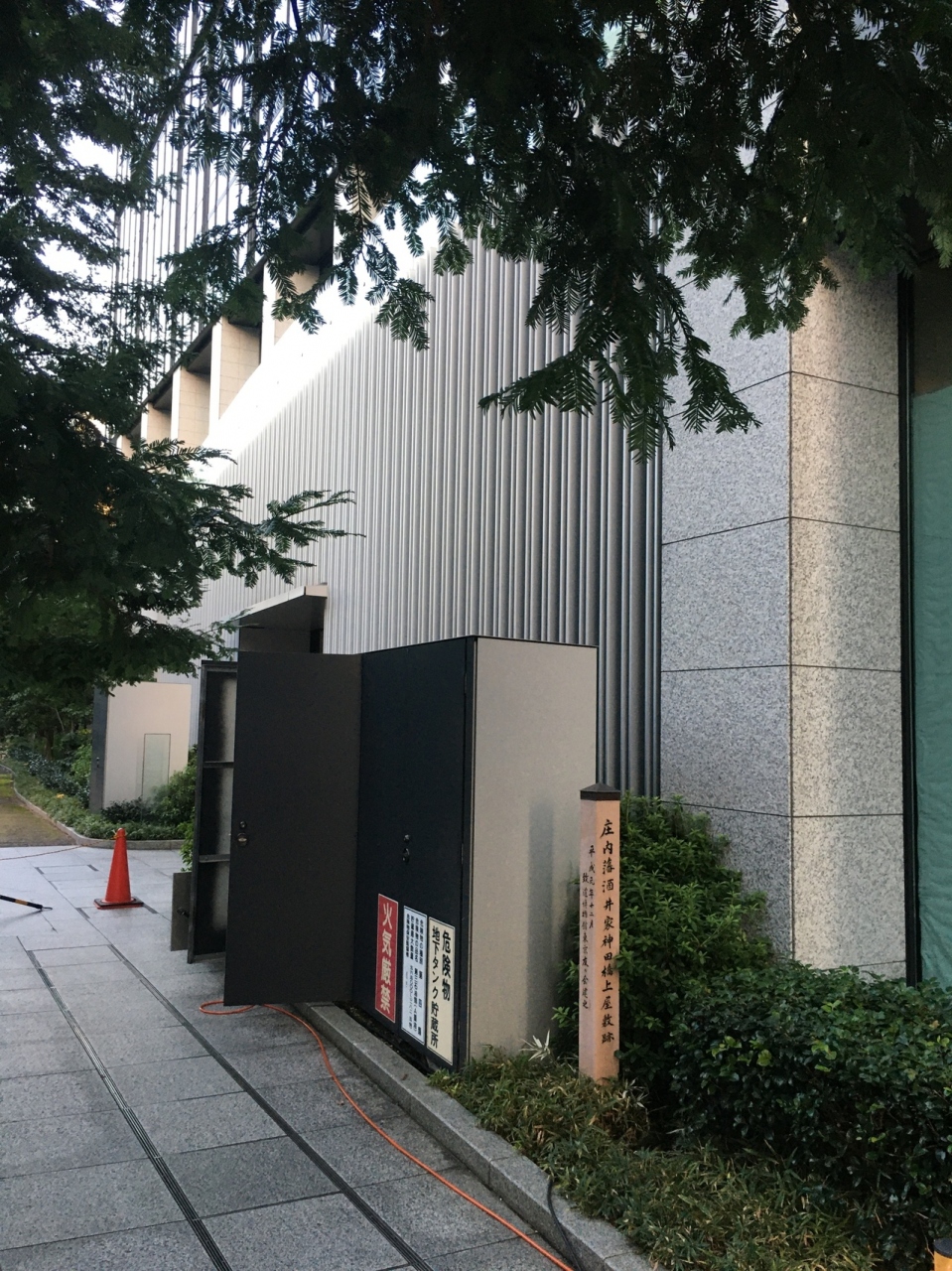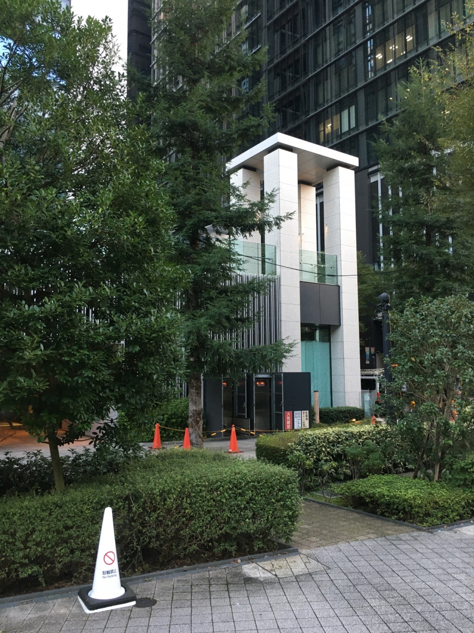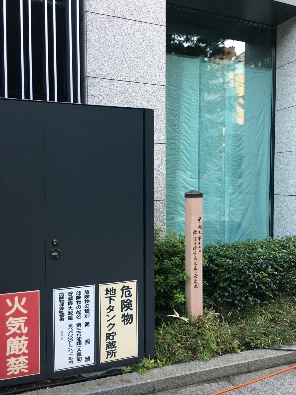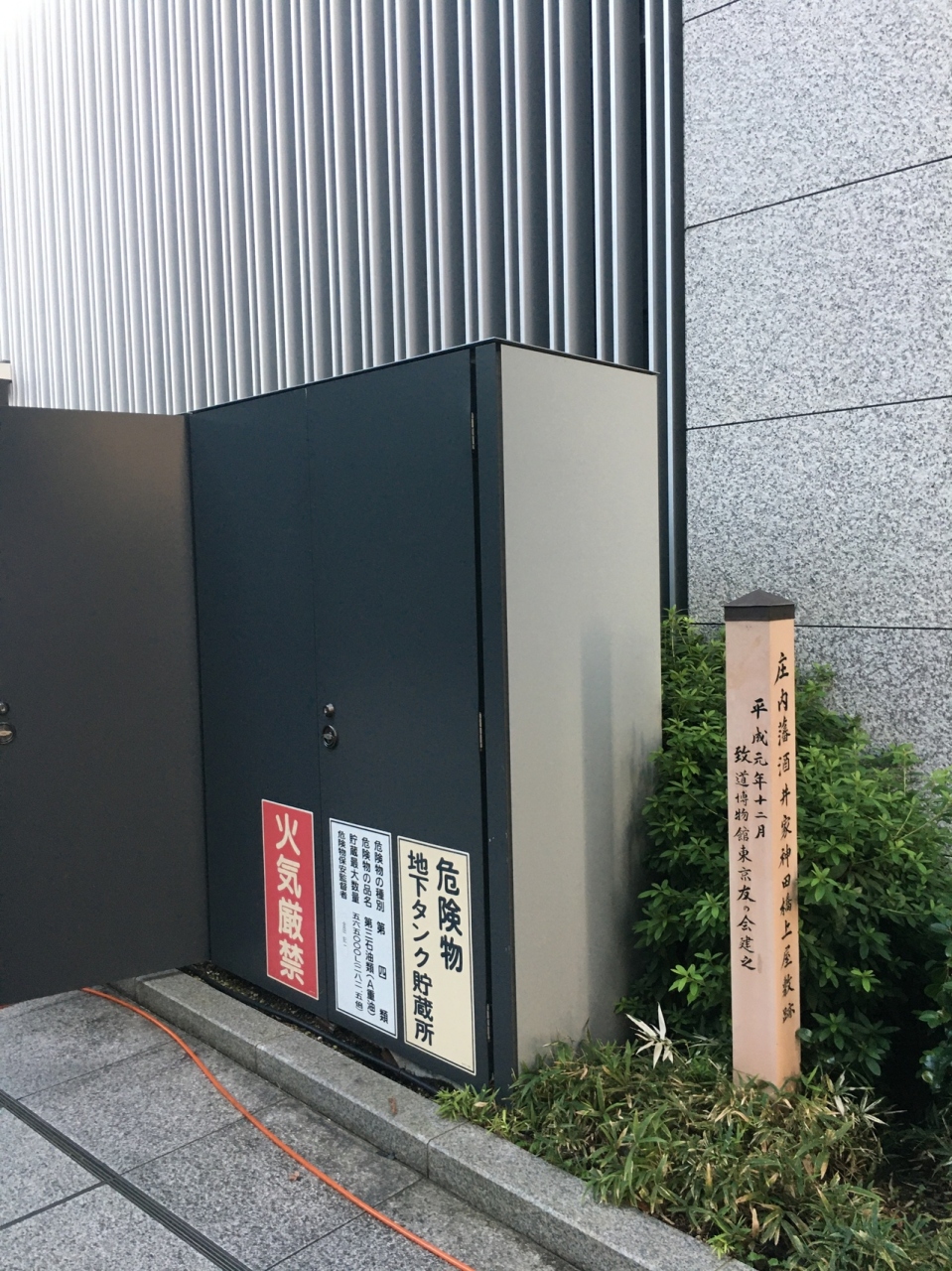 鎌倉橋と神田橋の脇の真ん中あたりの遊歩道沿いにあり大きなビルの横の整備された草の中に、木の碑のみ立っていました。比較的新しい碑らしく綺麗でした。屋敷の面影は今では全くなく、近くに石垣があるのが江戸時代を感じました。
