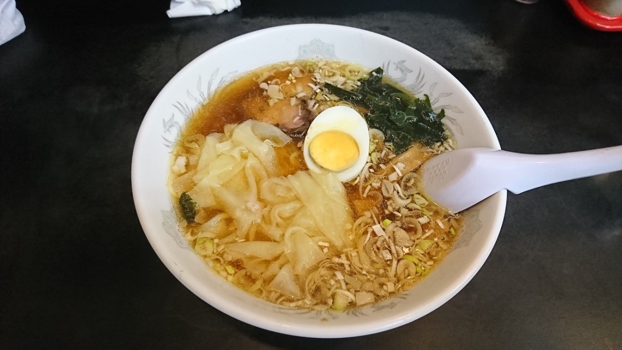 東京メトロ東西線浦安駅から徒歩4~5分程度、浦安市猫実4丁目にある中華料理屋さんです。夕食でワンタンメン680円をいただきました。具はワンタン4~5個、チャーシュー、ゆで卵半分、ワカメ、メンマ、ネギで、柔らかめの縮れ麺と醤油系中華スープの一品です。ワンタンの餡は少なく、皮ばっかり目立っていた点は残念でしたが、スープは奥深い旨味があり美味しかったです。