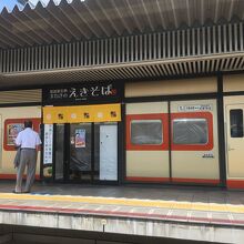 姫路駅、山陽線上りホームにある姫路駅弁業者のまねきが運営する駅そばです。外観はかつての気動車急行をイメージしており、ヘッドマークやサボも「まねき」でした。中華麺の「えきそば」と普通の「和そば」があります。