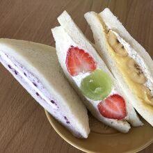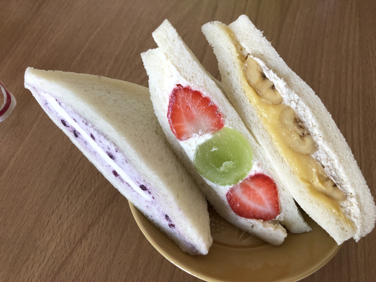 JRを使い自宅へ戻る途中で孫と赤羽駅エキュートに寄りました。孫がフルーツサンドを食べたいと言ったので、メルヘンに行きました。クリームチーズベリー生クリーム、苺とシャインマスカットを子供用に、自分はバナナカスター生クリームにしました。生クリームが入っているので保冷剤を付けて崩れないように箱に入れてくれました。どれも柔らかいパンでケーキのようなサンドイッチで皆満足しました。今まで自分が購入して持ち帰っていたので気が付きませんでしたが、子供目線でも商品が見えるケースでした。色とりどりで楽しくなる並べ方でした。