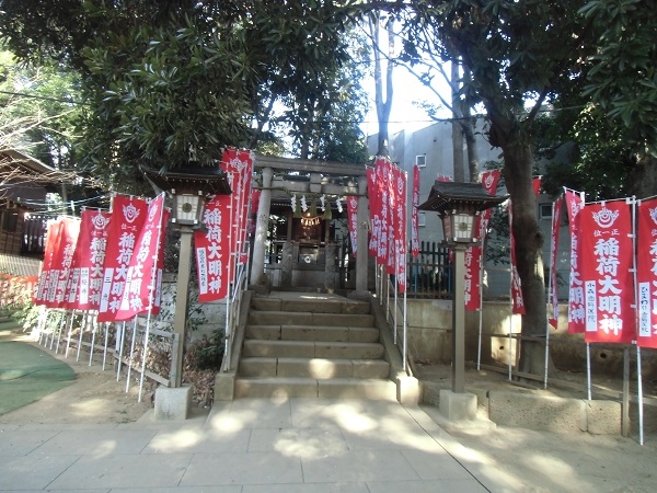 末社も多く、幟がはためいていたり、しゃもじ型の絵馬が掲げられていたりと賑やか。