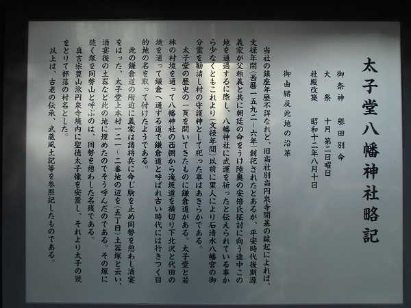 説明板によると、鎮座年歴不詳ながら、平安時代後期より前に村の守護神として祀られていたことは確かだとのこと。