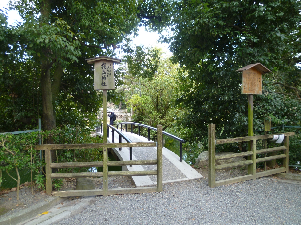 厳島神社は、京都御苑内で、堺町御門の西側、九条池の中島に鎮座し、「池の弁天さん」と称されています。市杵島姫命、田心姫命、湍津姫命の宗像三女神が主祭神です。社務所は、毎月1日と15日の月2度しか開きません。