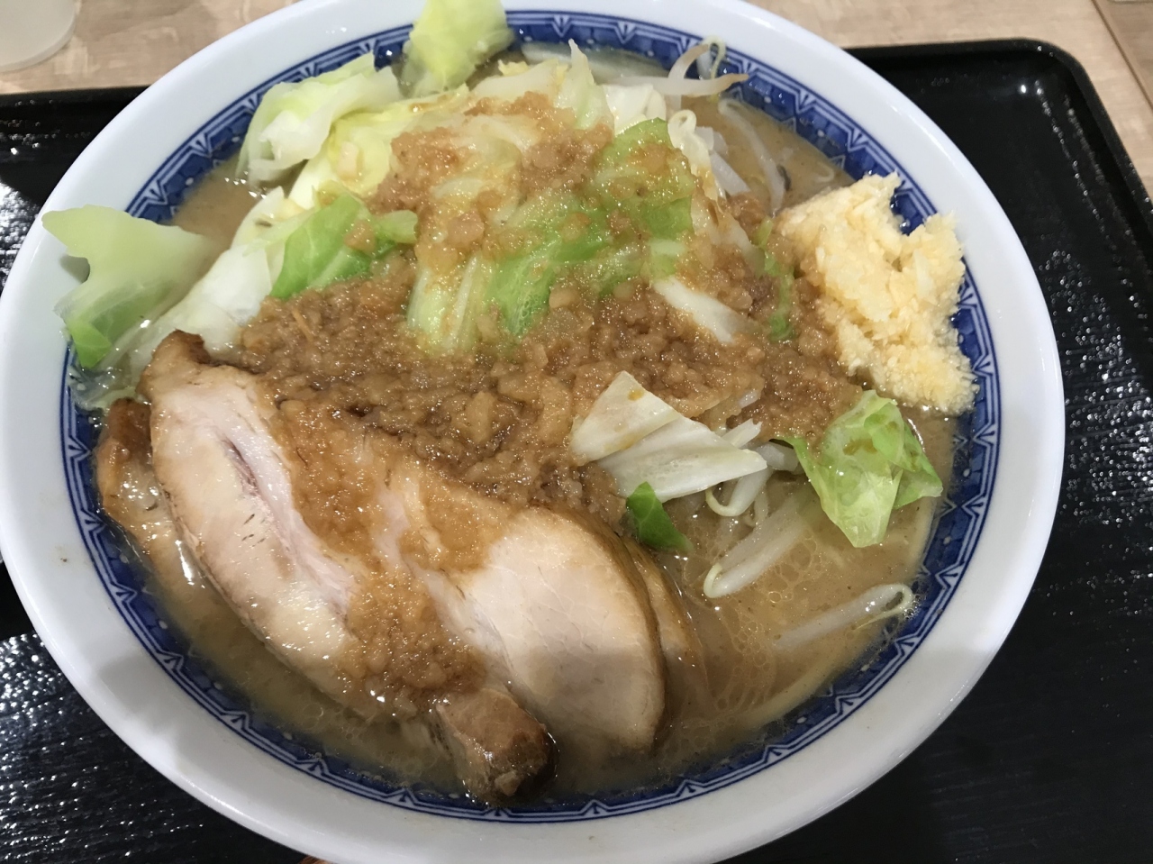 にんにくがたっぷり効いていて、背脂までトッピングされていて、非常に濃く深いラーメンでした。