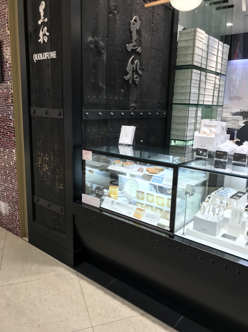 長崎堂から生まれたブランドがこの黒船です。長崎堂のカラーは黄色でしたが、こちらは店名通りの黒で、オシャレな雰囲気に生まれかわりました。商品もカステラサンドなどパティスリーらしい商品もあって、阪急に来たら、立ち寄りたいお店ですね。