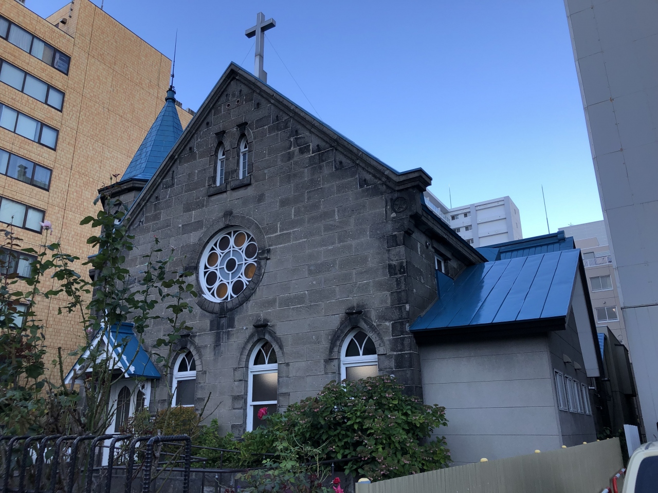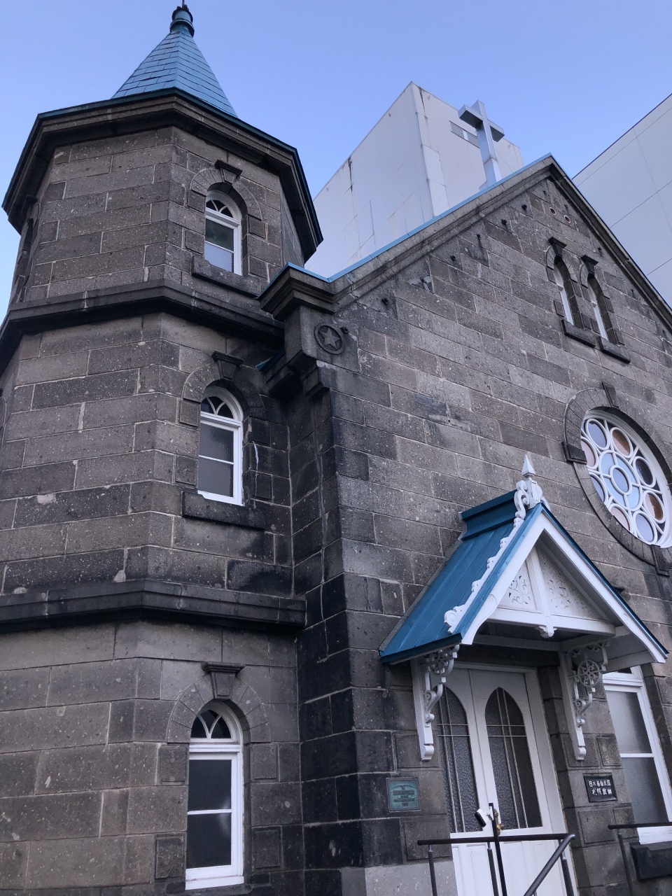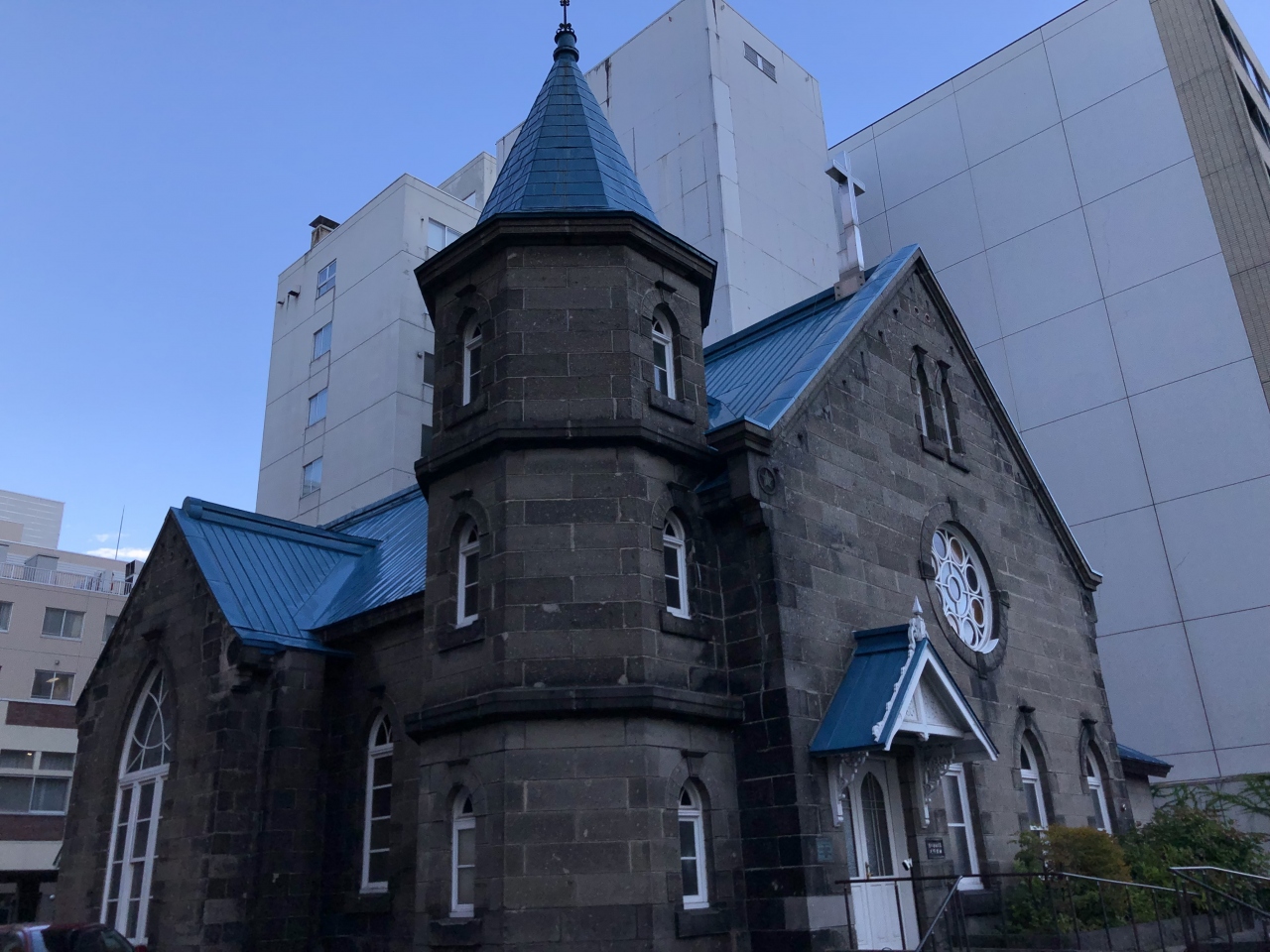 創成川通りにある教会で、一見して目を引く建物でした。明治時代に建てられたもので、札幌軟石を使っているそうです。青い屋根の塔や円形の窓など、細かい部分も可愛らしくて、どこかヨーロッパの建物を思わせる建物でした。外観だけでも一見の価値があると思います。国の登録有形文化財にも指定されていました。