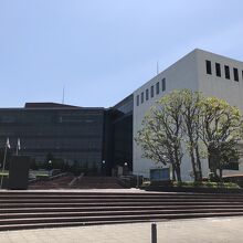 海の方に開かれた感じのする開放的な外観がいいなと思いました。昭和レトロとまではまだいかないけど、最近の建物とは明らかに違うテイスト。1975年建設ということなので、もう少しすればもっと味のある建物になるかも・・。でも、そのころには耐震性や耐久性の問題がでてくるかも、ですね。