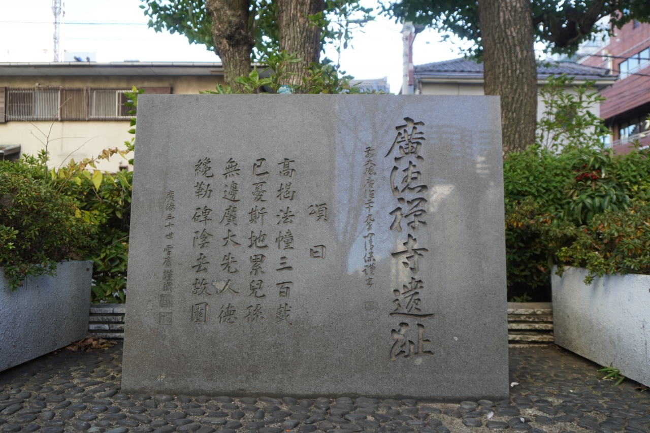 ということで、実は台東区役所もその敷地跡に建っているんですね。廣徳禅寺遺趾石碑というのがあって、広徳寺が小田原城の落城とともに焼失。当地で徳川家康が再興したとか経緯が書かれていました。