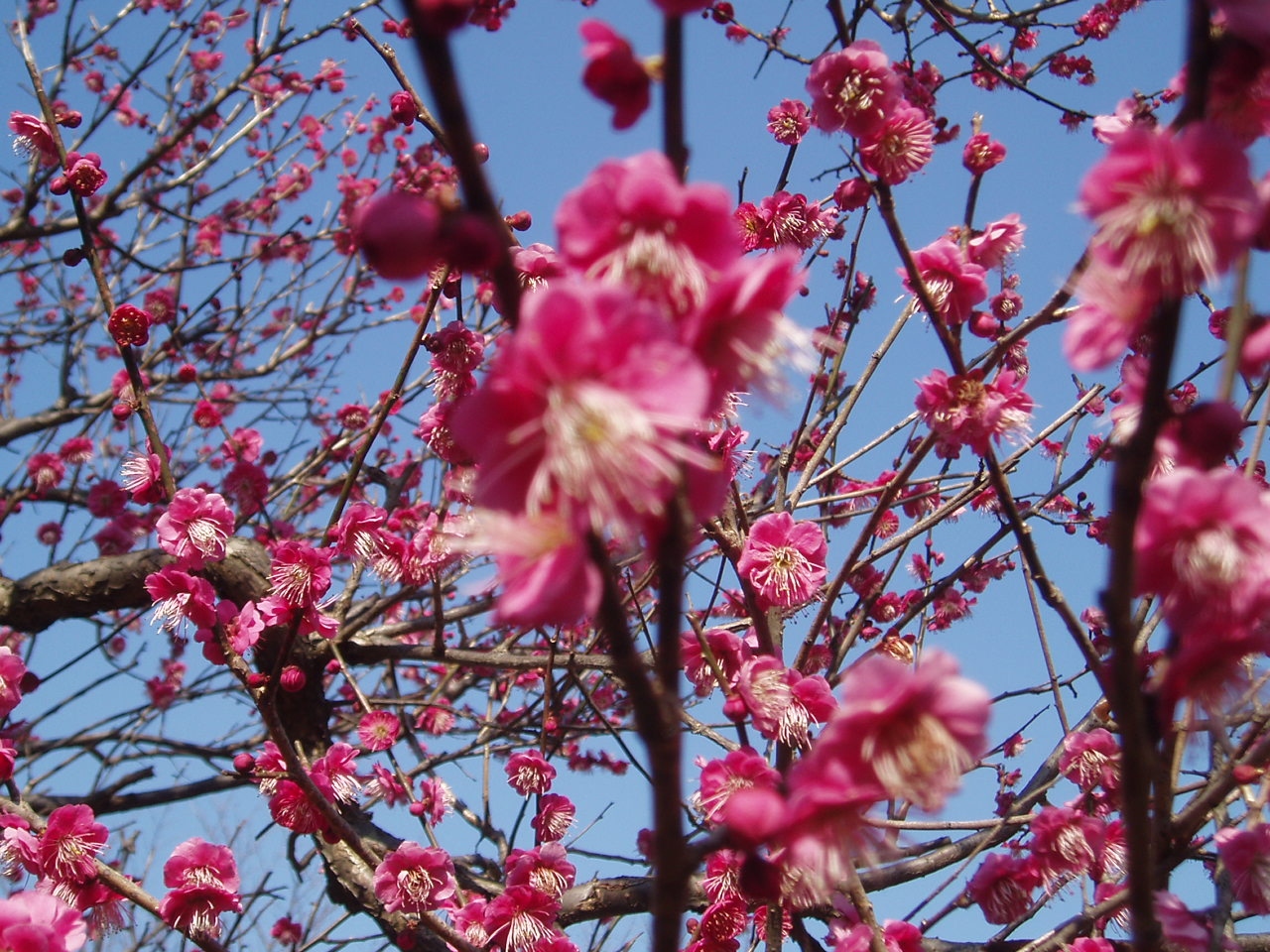 桜の名所として知られる小金井公園ですが、広くはないものの100本ほどの梅の木が植えられている梅園もあります。広場にはさまれた間にあってあまり目立ちませんが、紅白の花が見事に開き、春の訪れが近いことを感じさせる香ばしい匂いがまわりに漂っていました。