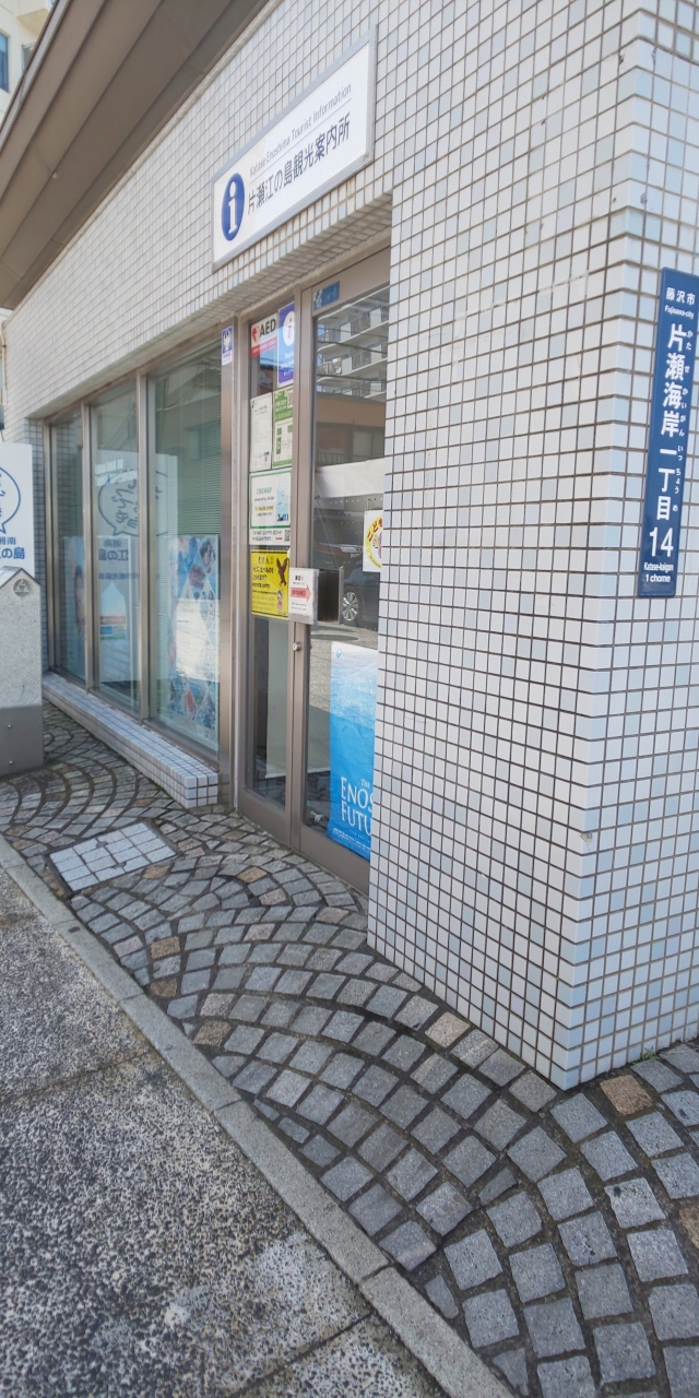 片瀬江ノ島駅の改札を出て境川の橋を渡ると見えてくるのがこちらの観光案内所です。
